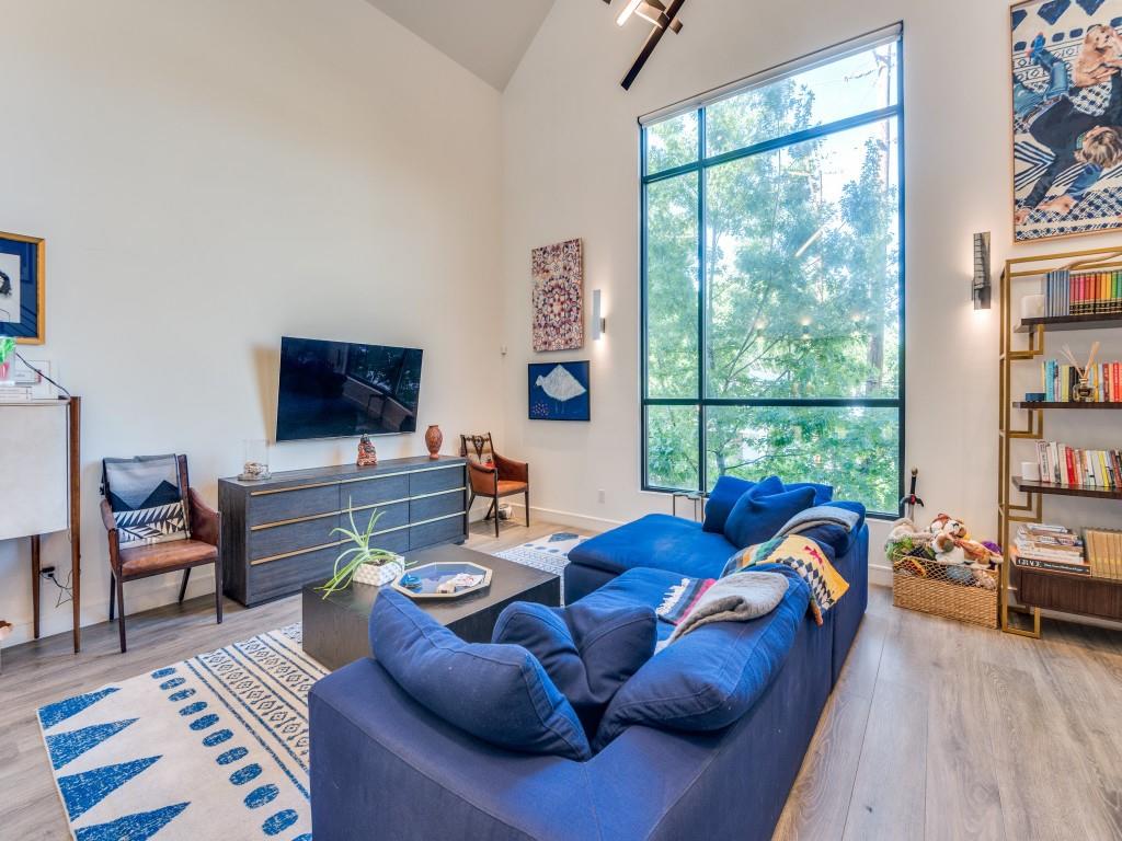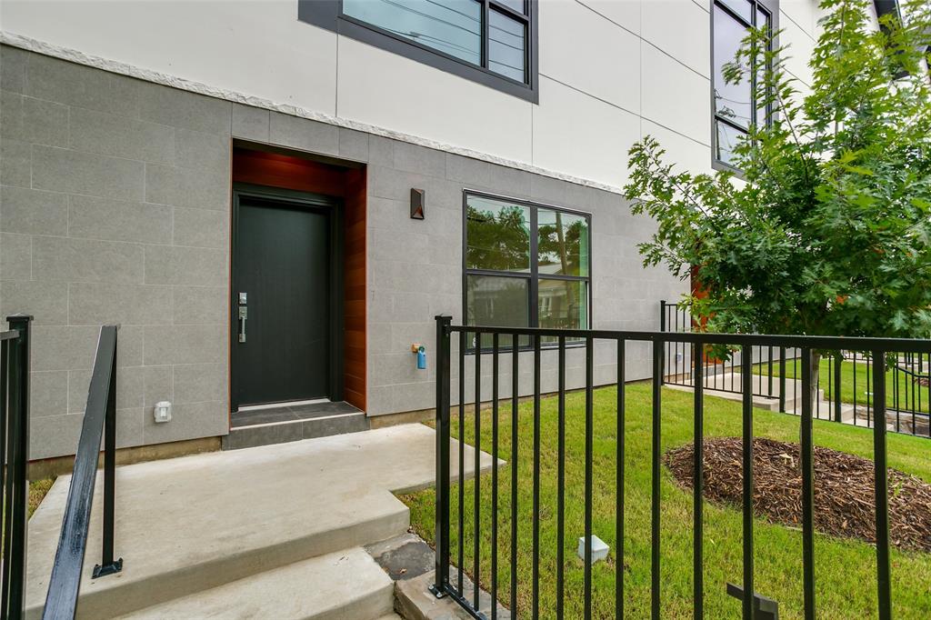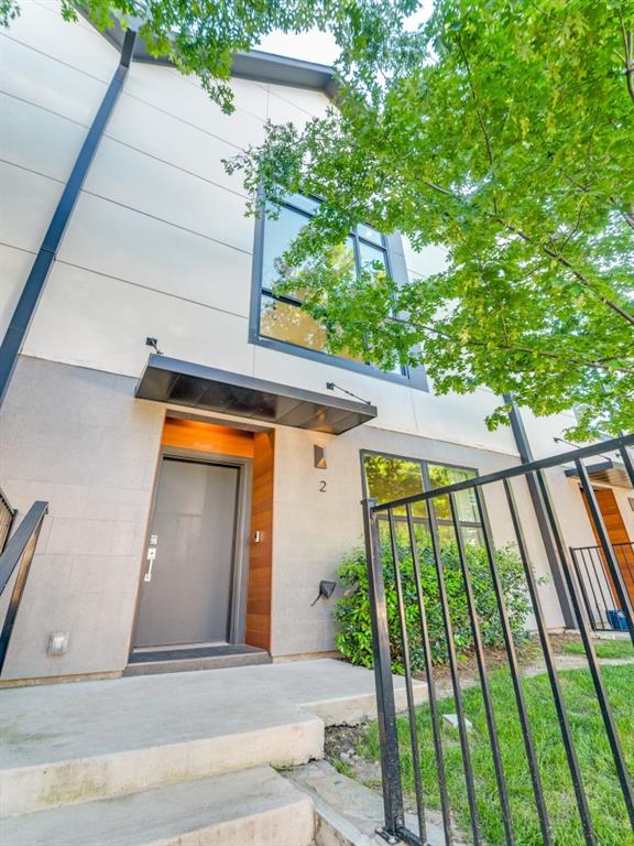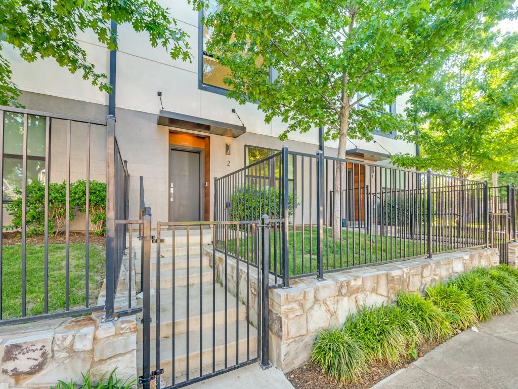 Architecturally stunning modern condo, tucked behind the gates of an intimate East Dallas community where walkability meets style. Designed and built by Alexander Remington Homes, this residence blends bold design, high-end modern interiors, and soaring ceiling heights in the living room. A spacious private courtyard welcomes you in, and large-scale commercial-grade windows flood the space with natural light.