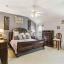 The kitchen is a chef’s dream, highlighted by a beautiful backsplash, gas stove, built-in microwave, and ample cabinet space. The eat-in kitchen with box seating is perfect for casual meals, while the cozy living area with a fireplace as the focal point creates the perfect space to unwind.