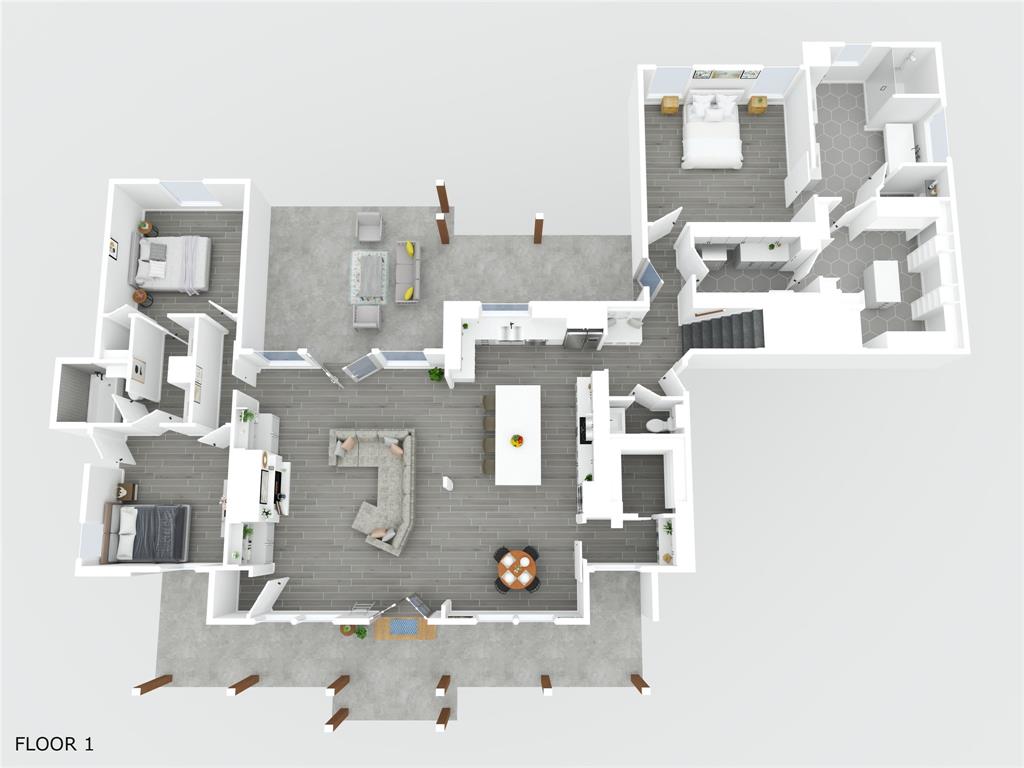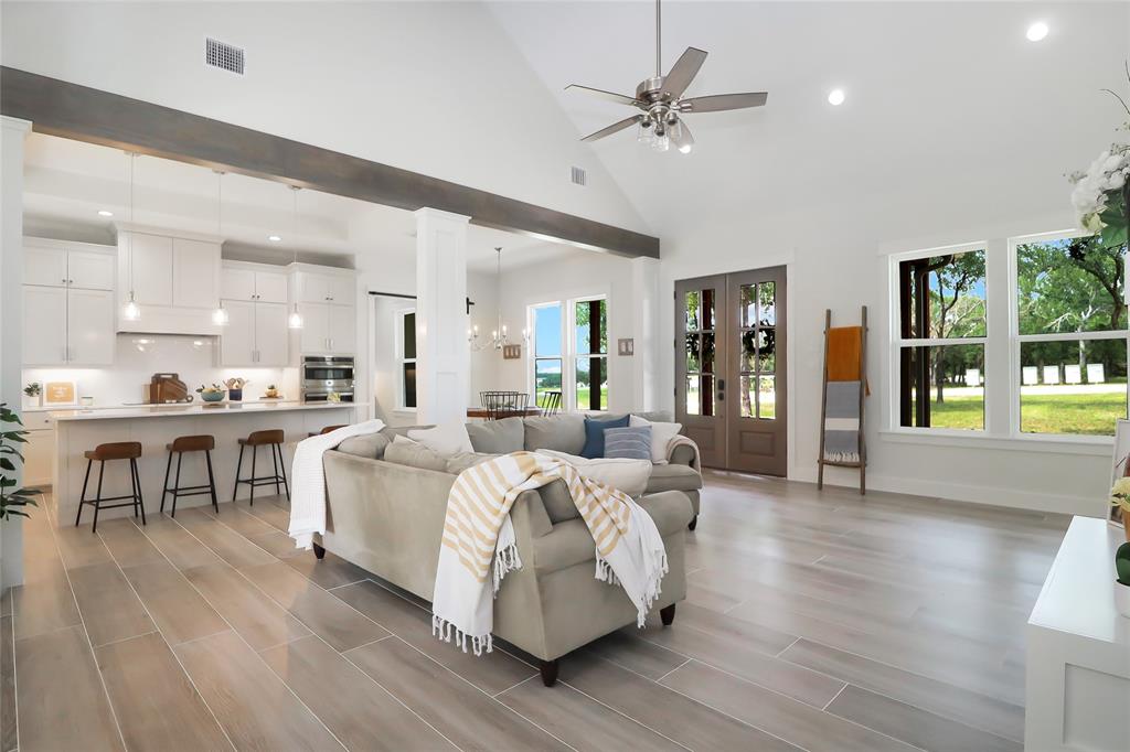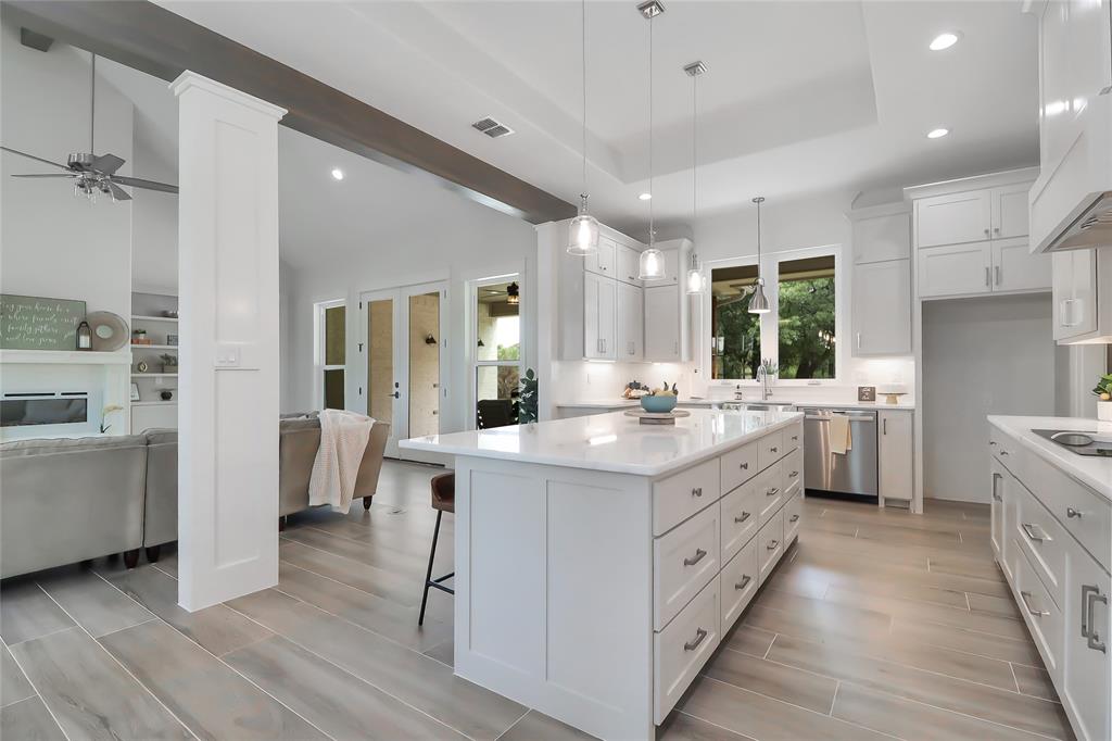 Inside, every detail is intentional. The kitchen features a large island with deep drawers in place of traditional cabinets, a farmhouse sink, and soft-close drawers throughout. A neutral color palette flows seamlessly from room to room, offering a blank canvas to personalize and truly make the space your own. Storage is plentiful and smartly designed, with custom closet systems that maximize space in every room and a hidden secret room perfect for a gun safe, panic room, or additional storage.