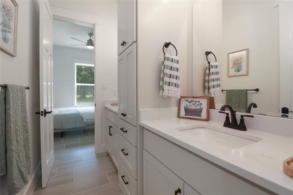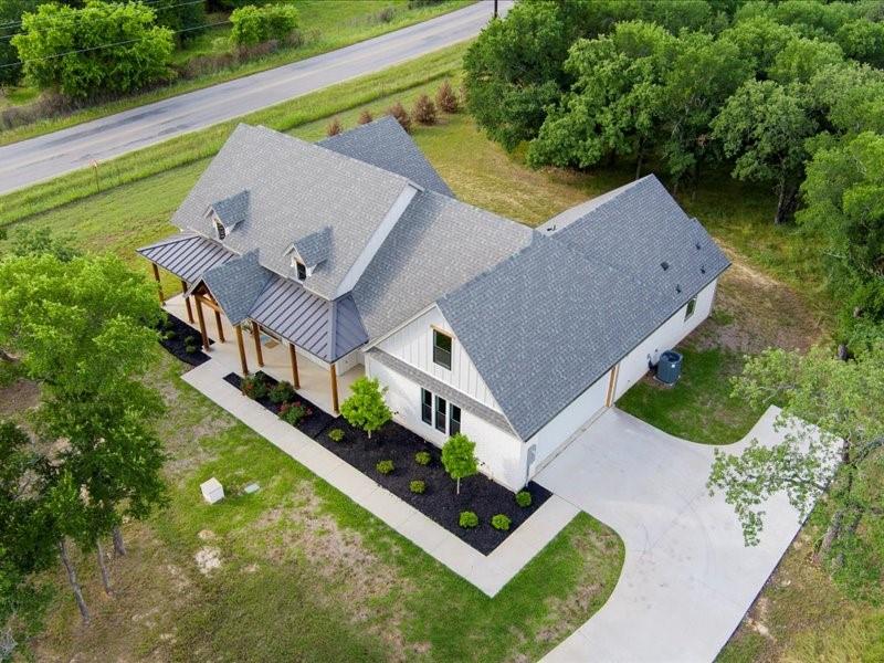 OWNER FINANCING AVAILABLE. Modern farmhouse charm meets high-performance construction in this newly built home on 3 wooded acres in sought-after Bluebonnet Ridge, just off Tin Top Road in Weatherford. Designed with care and crafted to last, this home offers thoughtful upgrades that go beyond the surface—including high-impact hurricane ties for extra durability in Texas weather, a fully spray foam insulated attic for energy efficiency, and solid core doors throughout for superior sound insulation.