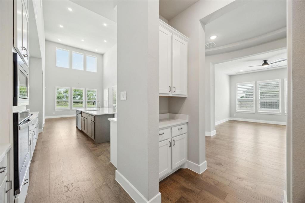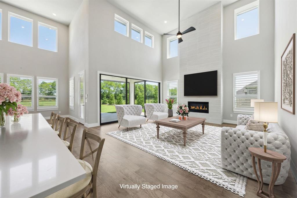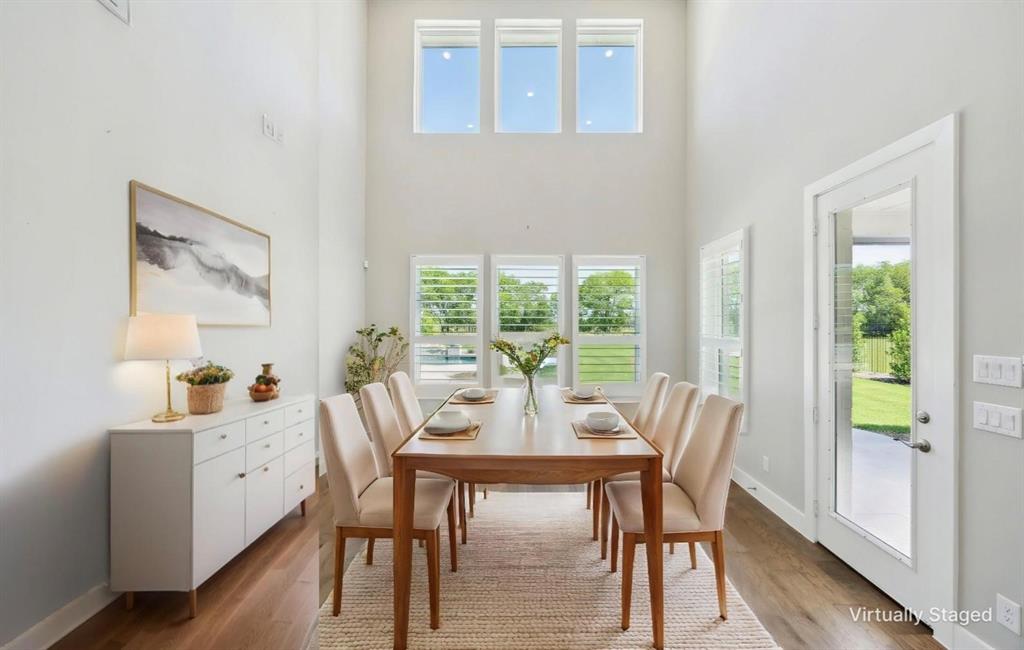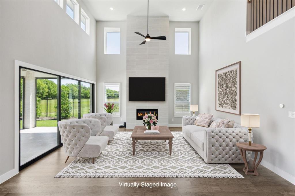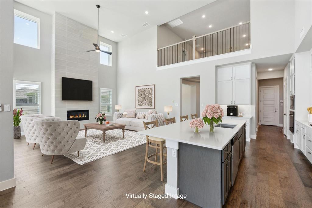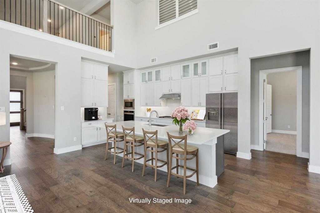 Upon entering, you're greeted by 19-foot ceilings in the expansive family room & gourmet kitchen, bathing the space in natural light through floor-to-ceiling windows. The chef's kitchen is equipped with a central island, walk in pantry, & a convenient butler's pantry, ensuring you have all the tools needed to host & entertain.