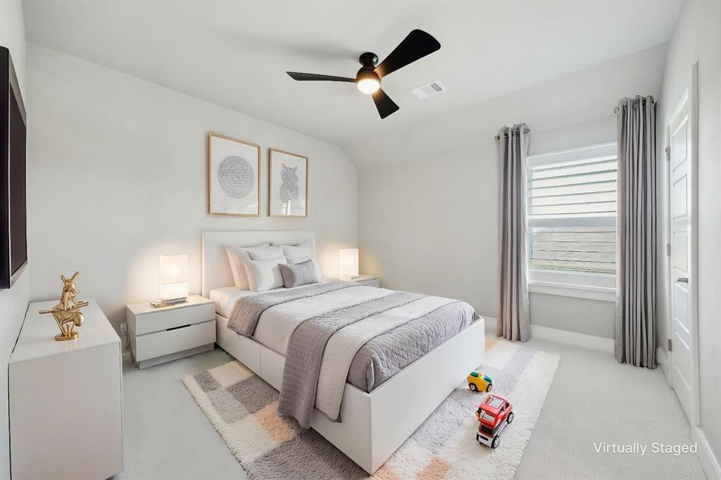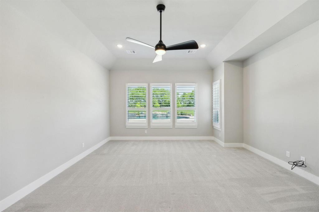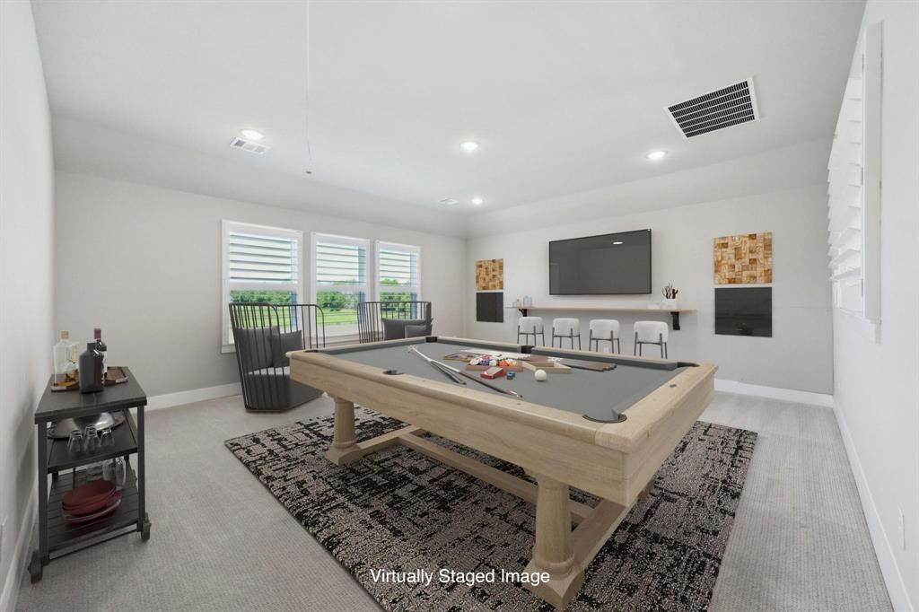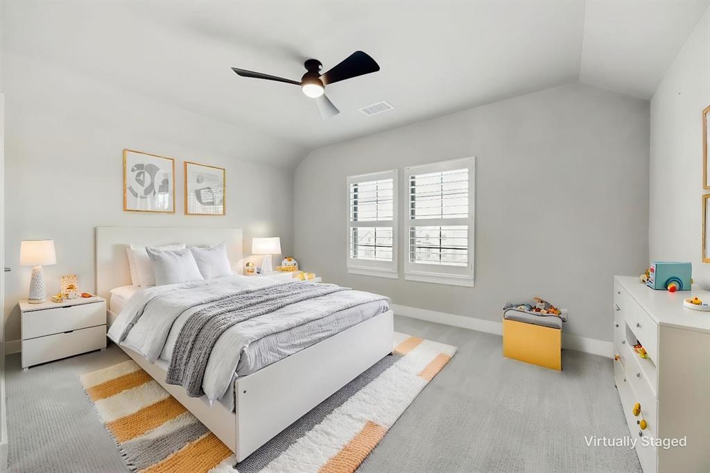 Upstairs, 3 additional bedrooms (the jack & jill bedrooms have walk in closets), 2 bathrooms, and a game room provide ample living space, ensuring comfort and versatility. The exterior of the home is equally impressive, with a covered patio (equipped with electric roller shades to enclose porch) overlooking a private backyard oasis.