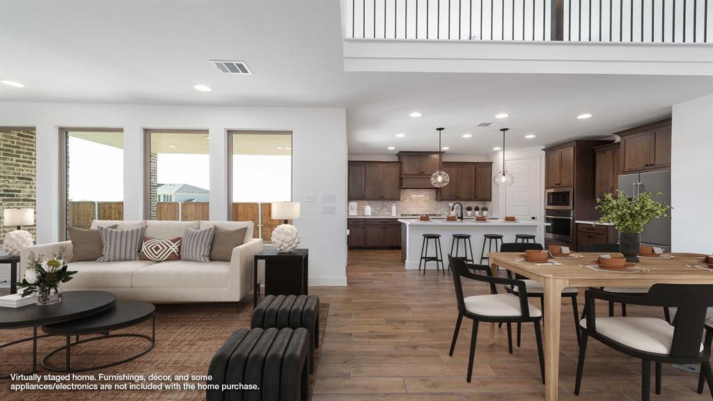 Front porch opens into the two-story entryway. The primary suite is off of the main hallway and features dual vanities, a large glass enclosed shower, and an oversized walk-in closet. Down the main hallway you are greeted by the open family room featuring a 19-foot ceiling and wood mantel fireplace. The dining area boasts a wall of windows and joins the living areas. The kitchen boasts an island with built-in seating, 5-burner gas cooktop and a corner pantry. Upstairs on the second level you are greeted by a large game room boasting a wall of windows. A private guest suite featuring a walk-in closet and bathroom is off the game room. Secondary bedrooms featuring a Hollywood bathroom complete the second level. Covered backyard patio. Mud room and utility room are off of the two-car garage.