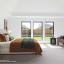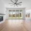 Home office with French doors frames the entry. Guest suite with a walk-in closet and a full bath. Theatre room with French doors. Kitchen features a large pantry, 5-burner gas cooktop and a large island with built-in seating space. Family room with a wood mantel fireplace and wall of windows. Primary suite with 12-foot coffered ceilings. Double doors lead to primary bath with separate vanities, a freestanding tub, separate glass-enclosed shower, and two walk-in closets. Covered backyard patio. Mud room leads to three-car garage.