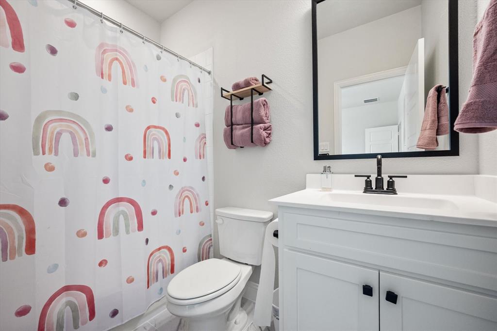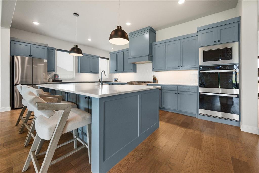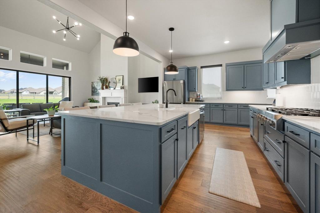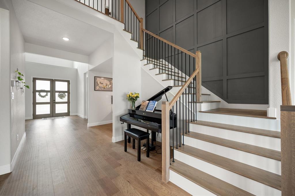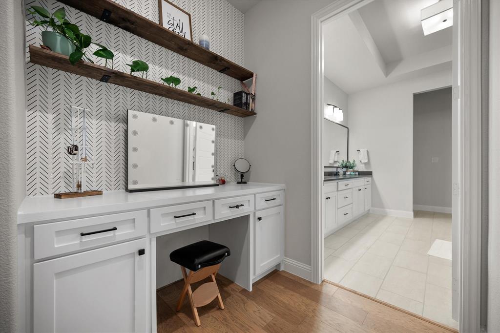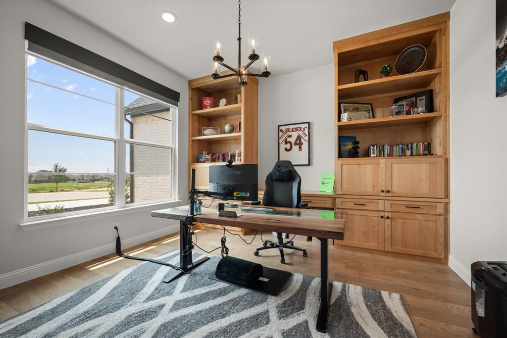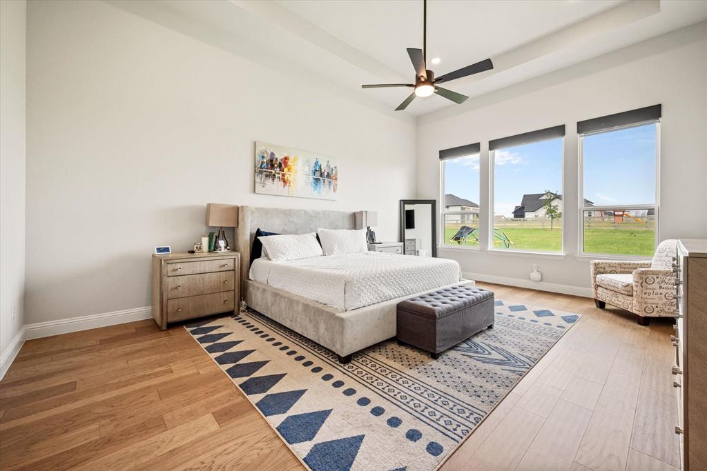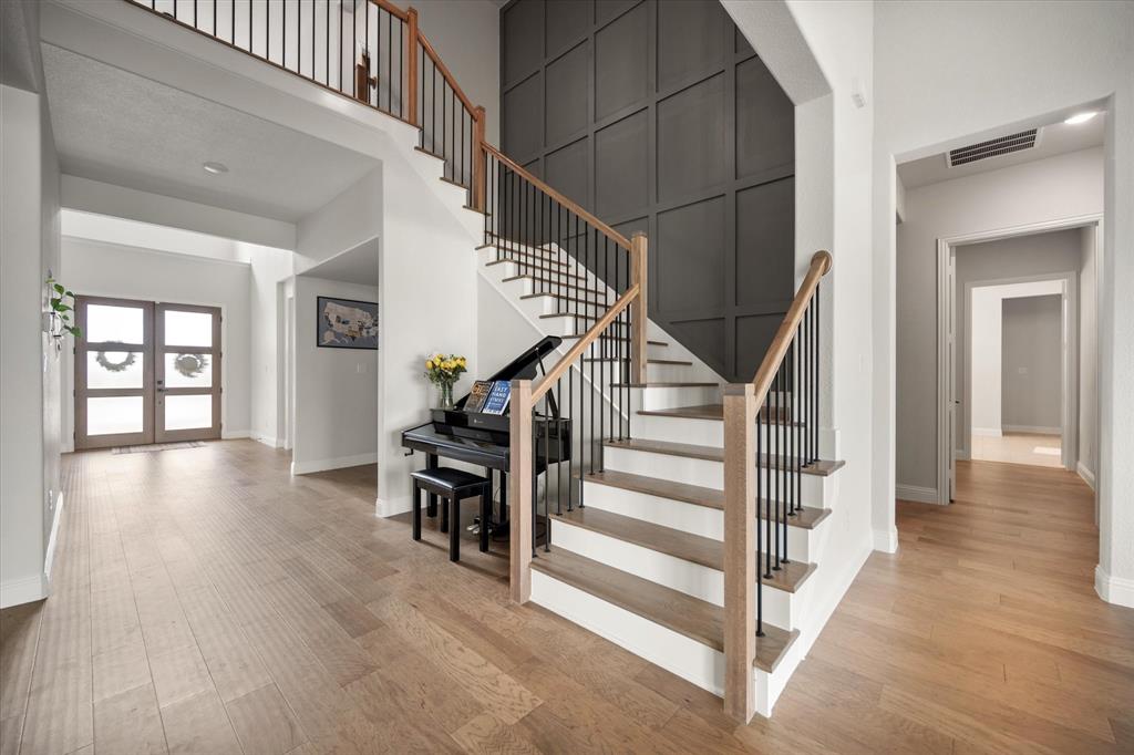 BETTER THAN NEW!! 2024 masterpiece with all of the new construction kinks worked out. Nestled in the sought-after, master-planned community of Harvest directly across from the serene community fishing pond. Featuring 5 spacious bedrooms, each with its own ensuite bathroom, plus a convenient half bath for guests; this home is ideal for luxurious living and effortless entertaining. Enjoy the elegance of a HUGE chef’s kitchen outfitted with a gas cooktop, double ovens, walk-in pantry, and abundant cabinetry. The open-concept floorplan flows seamlessly into a large back patio, highlighted by a stunning sliding glass wall and pre-wired for outdoor speakers—perfect for gatherings. This smart home, powered by HomePro Smart Home Services, also includes a private office, a media room pre-wired for surround sound, and a massive utility room with cabinetry and a sink. The primary suite offers a spa-like retreat with a garden tub, a walk-through shower, and a customizable closet system. Additional features include: -Second bedroom with ensuite on the main level – ideal for multi-generational living or guests -Tesla charging station and epoxy flooring in the oversized 4-car garage -Circle driveway for added curb appeal and convenience -Full sprinkler system, fenced 1.69 acre lot, and French drains -Room-darkening blinds -City water and sewer -Argyle ISD and a low tax rate. This home offers the perfect blend of elegance, functionality, and location—don’t miss your chance to own a slice of luxury in Harvest!