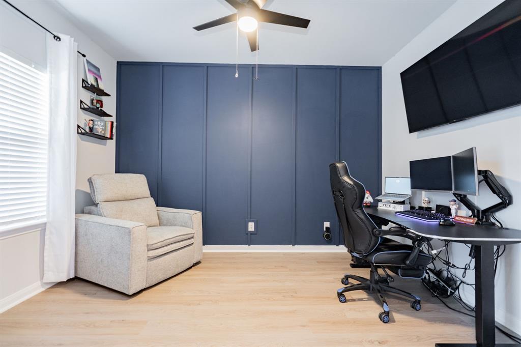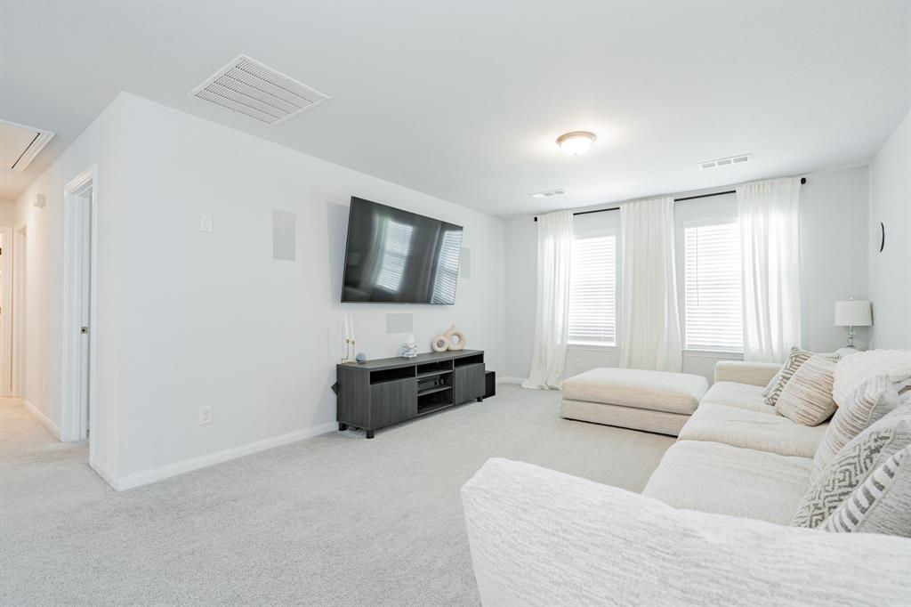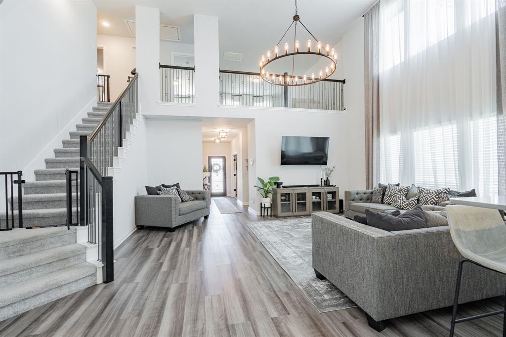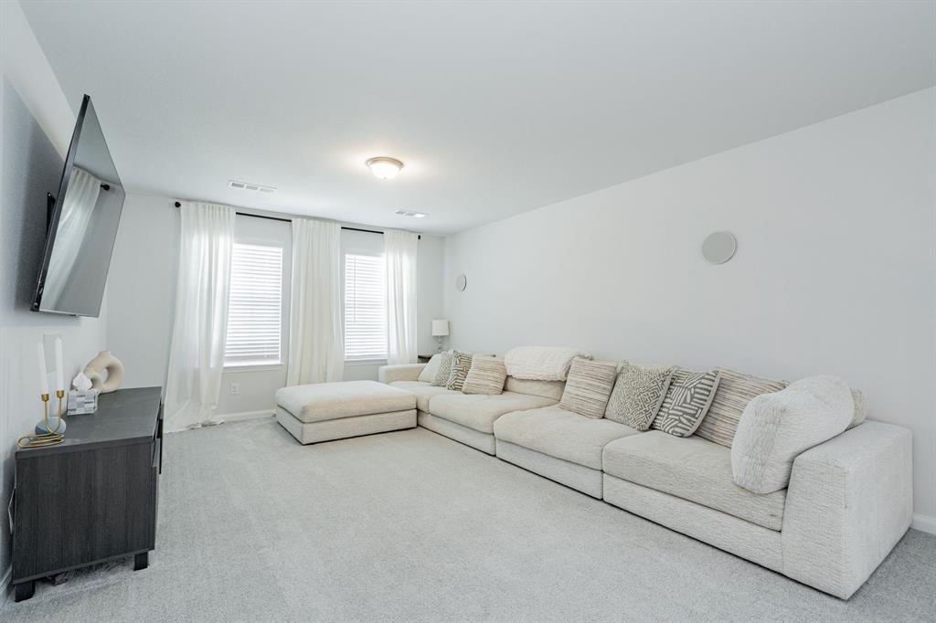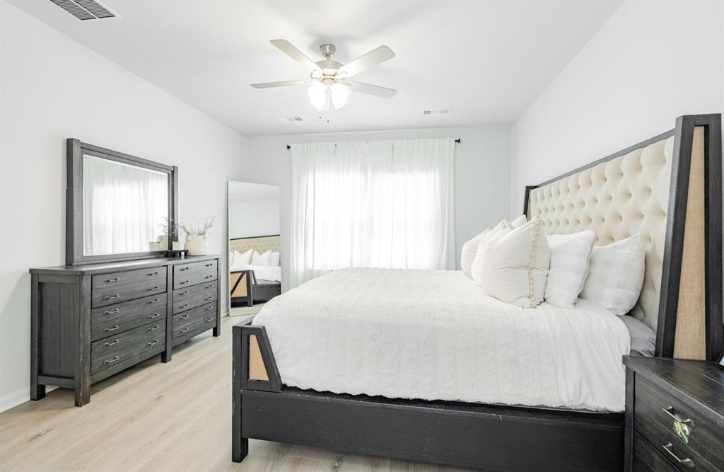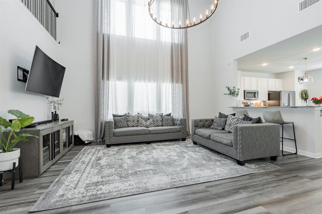 • Floor-to-ceiling windows with custom curtains that fill the home with natural light