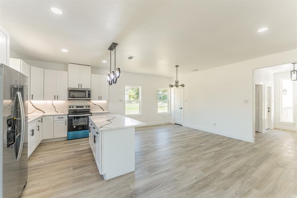 Move right in to this NEW CONSTRUCTION 3bedroom, 2bath home with elegant, contemporary touches! At the end of a foyer hall, find an open living and dining area with access to the backyard. Granite countertops, stainless steel appliances, granite backsplash, and pendant lighting over an island creates a beautiful cooking space. Recessed lights and crisp white walls throughout brighten the main living areas plus wood-looking luxury vinyl flooring gives a pop of warmth. Walk-in closets give you extra storage for clothes in the bedrooms. The foyer includes access to the attached 1-car garage, a hall closet, and the laundry room. You'll appreciate the upgraded finishes in this modern design. Have peace of mind by being the first one to own this stylish home!