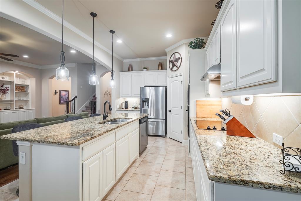 This home greets you with an open-concept layout, soaring ceilings, featuring rich hardwood floors, and abundant natural light. The gourmet kitchen includes granite countertops, stainless steel appliances, and a spacious island — ideal for both everyday living and entertaining.