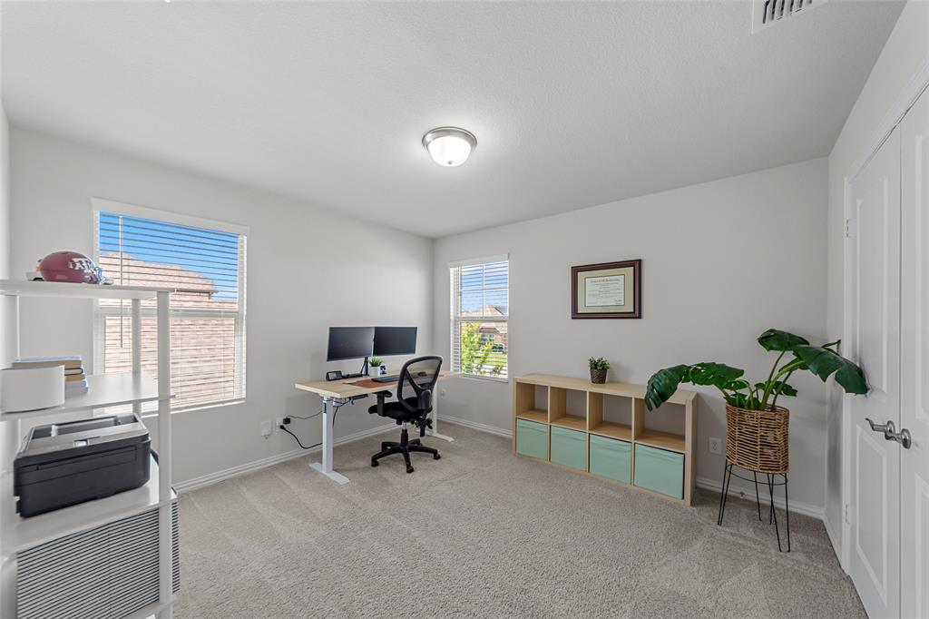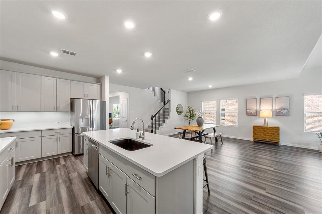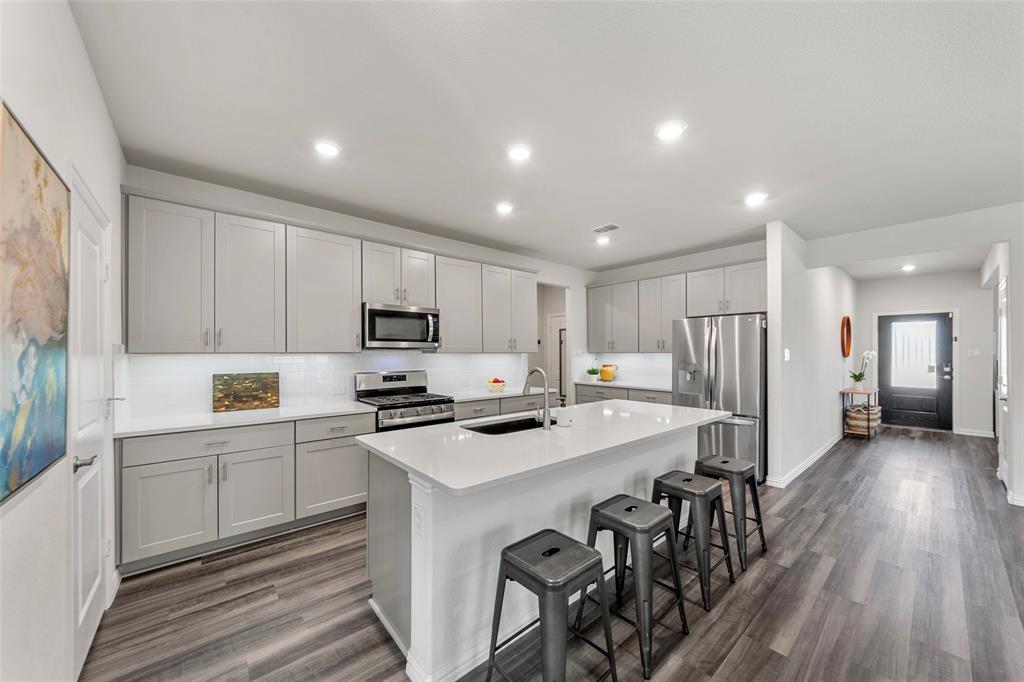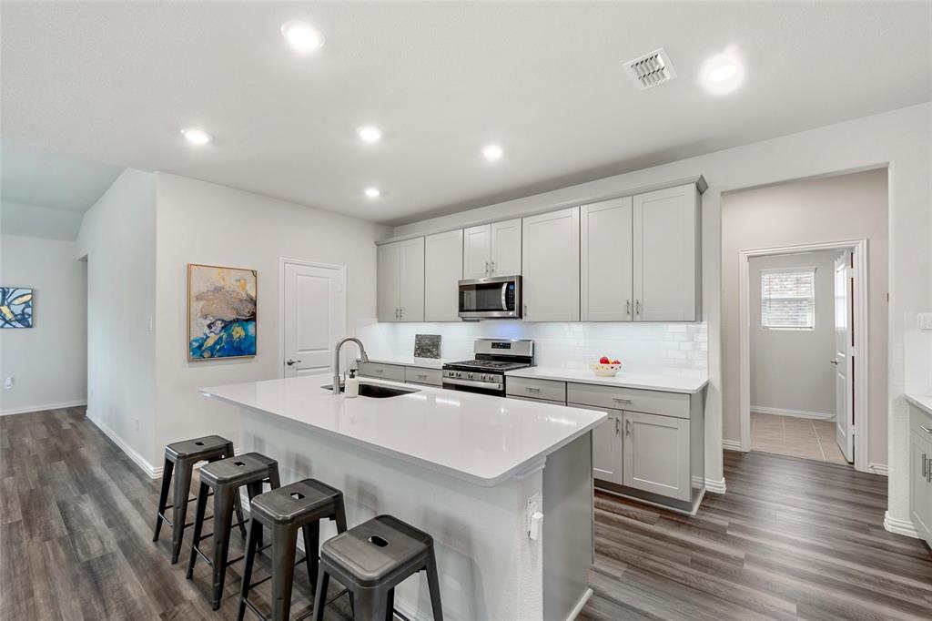 Beautifully maintained 4-bedroom, 3.5-bath home with a flexible office space and an open floor plan designed for modern living. This bright and airy home is filled with natural light and features spacious living and dining areas that seamlessly connect to the heart of the home—the kitchen. The kitchen boasts abundant cabinetry, generous countertop prep space, a gas range, and a massive walk-in pantry, perfect for any home chef. The primary suite is conveniently located on the first floor and includes an ensuite bath with an oversized walk-in shower for a spa-like experience. Upstairs, you’ll find additional bedrooms and bathrooms offering privacy and space for family or guests. Step outside to a large backyard with an extended covered patio—ideal for entertaining, relaxing, or building the outdoor kitchen of your dreams. This home is perfectly located near top-rated schools, shopping, and dining, and is part of a vibrant community with amenities including a pool, park, and playground. Garage is wired for EV charger and the attic has spray foam insulation. This one checks all the boxes and is move-in ready!