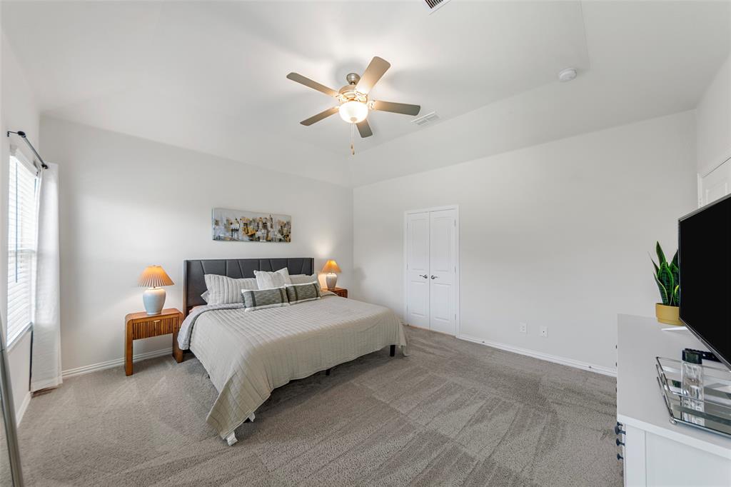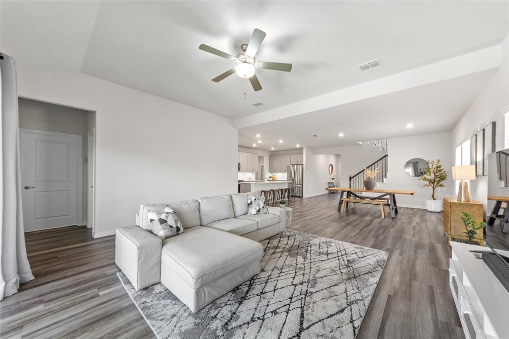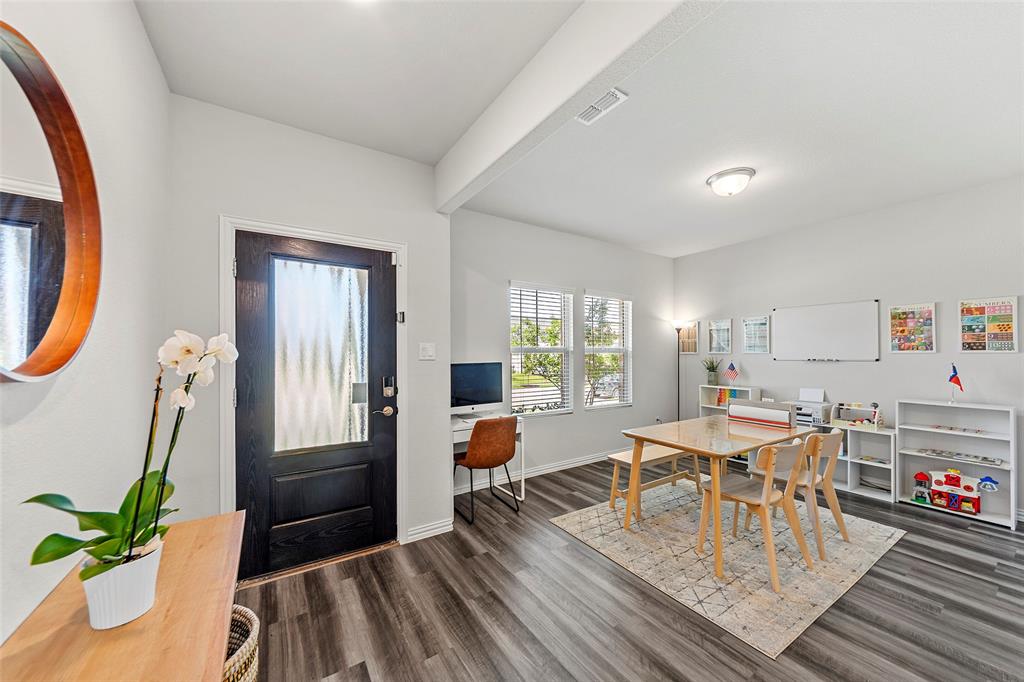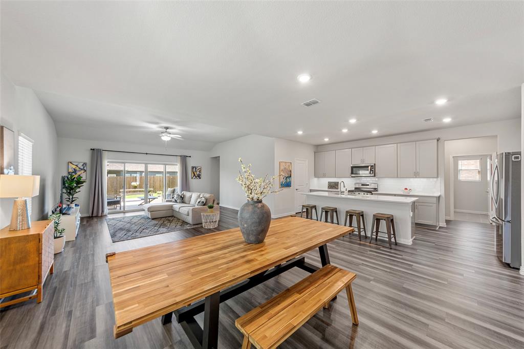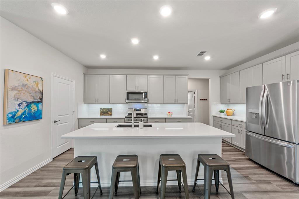 Beautifully maintained 4-bedroom, 3.5-bath home with a flexible office space and an open floor plan designed for modern living. This bright and airy home is filled with natural light and features spacious living and dining areas that seamlessly connect to the heart of the home—the kitchen. The kitchen boasts abundant cabinetry, generous countertop prep space, a gas range, and a massive walk-in pantry, perfect for any home chef. The primary suite is conveniently located on the first floor and includes an ensuite bath with an oversized walk-in shower for a spa-like experience. Upstairs, you’ll find additional bedrooms and bathrooms offering privacy and space for family or guests. Step outside to a large backyard with an extended covered patio—ideal for entertaining, relaxing, or building the outdoor kitchen of your dreams. This home is perfectly located near top-rated schools, shopping, and dining, and is part of a vibrant community with amenities including a pool, park, and playground. Garage is wired for EV charger and the attic has spray foam insulation. This one checks all the boxes and is move-in ready!