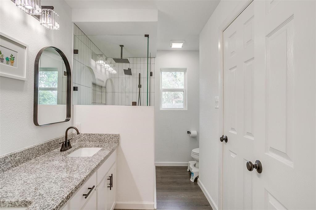 The primary suite is a serene retreat, and its spa-like bathroom has been beautifully remodeled. The standout feature is the brand-new frameless glass shower—featuring sleek, crystal-clear panels, elegant tilework, upgraded fixtures, and a seamless, open feel that turns everyday routines into a luxury experience.