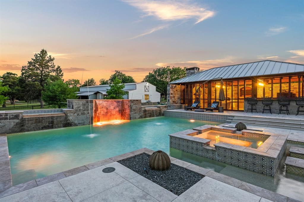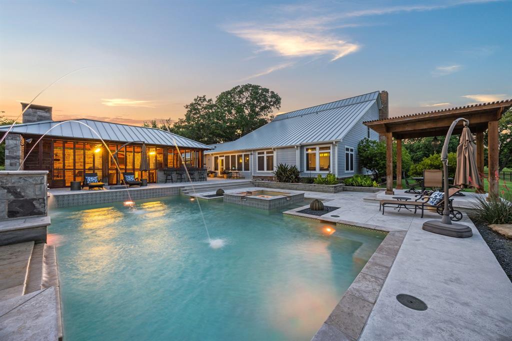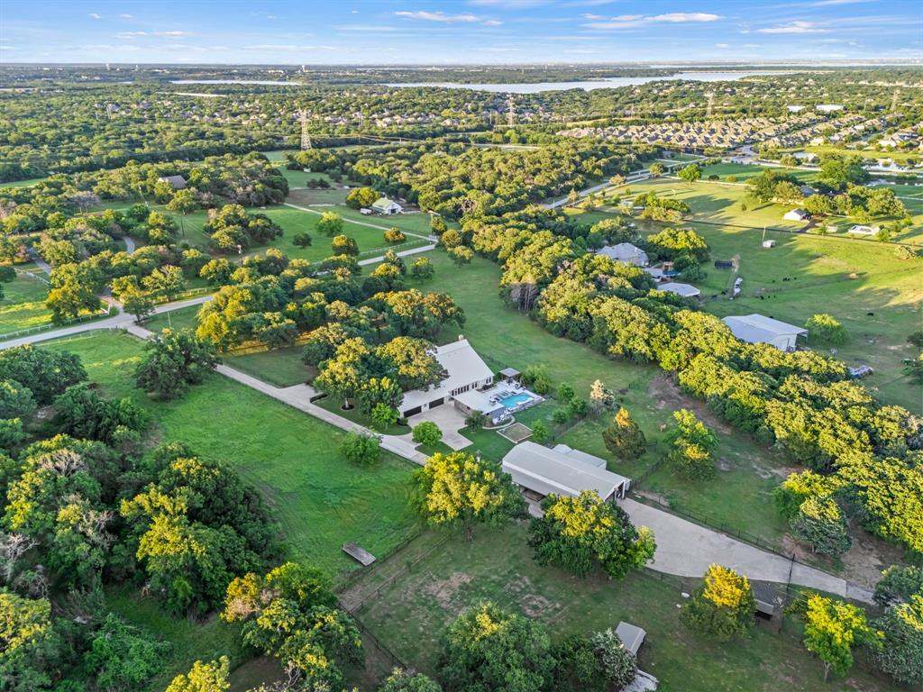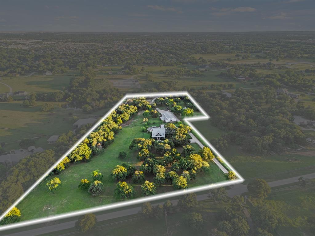 Welcome to this stunning 9.81 acre private luxury estate in the hidden gem of Copper Canyon, an ideal retreat for hobby farmers, equestrians, or anyone seeking ultimate peace and privacy with city amenities nearby. With over 8 acres AG exempt, this fully fenced property features an electric gated entry, mature trees throughout, and breathtaking sunset views that make every evening feel like a getaway, perfectly blending country charm with city accessibility. The custom farm house of your dreams features the most incredible roomy covered front porch, a standing seam metal roof installed in 2023 and offers 4 bedrooms and 3.5 baths. Enjoy an open-concept layout perfect for entertaining and large family gatherings with a spacious living area, comfortable dining space, and a gourmet kitchen featuring granite countertops, Sub-Zero refrigerator, 6 burner gas range, double ovens, and walk-in pantry. The primary suite is on the main level with a spa-like ensuite bath that has been fully remodeled with heated floors plus oversized shower and bench. Step outside to your own resort-style oasis complete with a custom pool and spa featuring both a heater and a chiller as well as multiple water features. The outdoor living center is fully equipped with a kitchen, grill and smoker, fireplace, and dining area, ideal for year-round enjoyment. A raised stone-outlined garden bed is ready for your vegetables and herbs. Plenty of parking options on the property including a 4-car attached garage with cedar doors, ample driveway space, and a 2,400SF +- workshop with RV parking, car lift, loft for a game room, hobby space, and separate living quarters with a full bath which is amazing for guests or staff. Just 5 minutes to Lake Lewisville and Highland Village, and 20 minutes to DFW Airport, this one-of-a-kind ranchette offers the perfect blend of luxury, space and location. Don’t miss your chance to own a truly exceptional property in one of North Texas’ most sought-after areas.