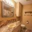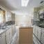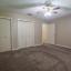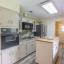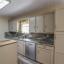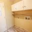 Just off the living room, a quaint dining nook overlooks the kitchen, where you'll find ample cabinet space, refrigerator, an electric stovetop with microwave above, and a built-in oven right next to it. Adjacent to the kitchen is a utility room with washer and dryer hookups for added convenience.