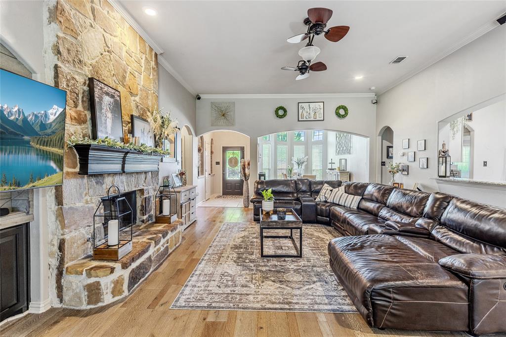 Immaculate and Stunning David Besser home! One of the original builders in the established Hidden Creek Subdivision! You will appreciate the architectural design and stonework of the exterior the minute you arrive! A trademark to the Davis Besser Design! Beautifully landscaped with mature trees and a lovely front porch to enjoy the evening sunsets! Enter to find a spacious open floorplan with high ceilings, decorative arched niches, hand scraped wood floors throughout the family areas and primary suite, as well as tons of modern updates and custom features! The formal dining room boasts a rounded floor to ceiling bay window design giving it added length to hold a large table-perfect for those big holiday meals with family and friends! The large living room has tons of space to spread out with any furniture layout and boasts a lovely wood-burning fireplace with stone hearth and custom mantel that adds a warm touch! The kitchen is light and bright, with an antique glaze and hardware on the cabinets, breakfast bar where the kids can sit and hang out, updated appliances, and granite countertops! You’ll love the added touches like sliding barn doors giving a stylish and unique feel, decorative lighting, and so much more! The primary suite feels like your own private getaway with hanging chandeliers, wood accent walls for extra charm, dual sinks, garden tub, separate shower, and walk in closet! Step outside to a covered porch and extended patio that’s perfect for Sunday football, hanging out with friends, or hosting family get-togethers. Follow the walkway to your storage shed with electricity for all your tools and outdoor necessities! Don't forget the amenities of this neighborhood are amazing! There is a clubhouse gym, pool, tennis courts, sand volleyball, jogging-walking trails, playground, not to mention the large fishing ponds with fountains at the neighborhood entry! Don't miss out! This one won't last long! Truly a must see!