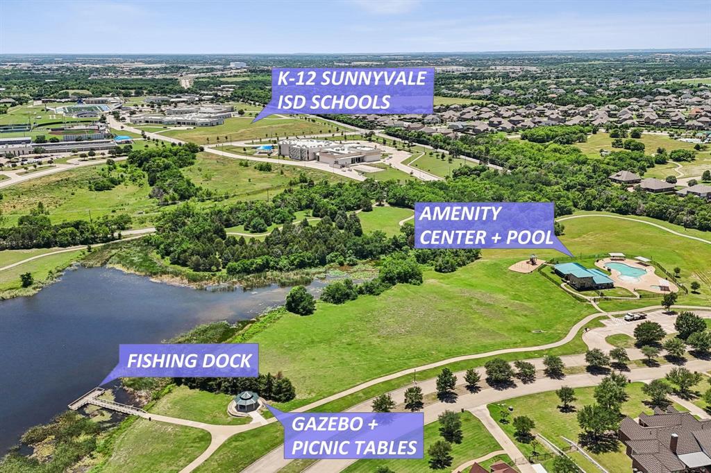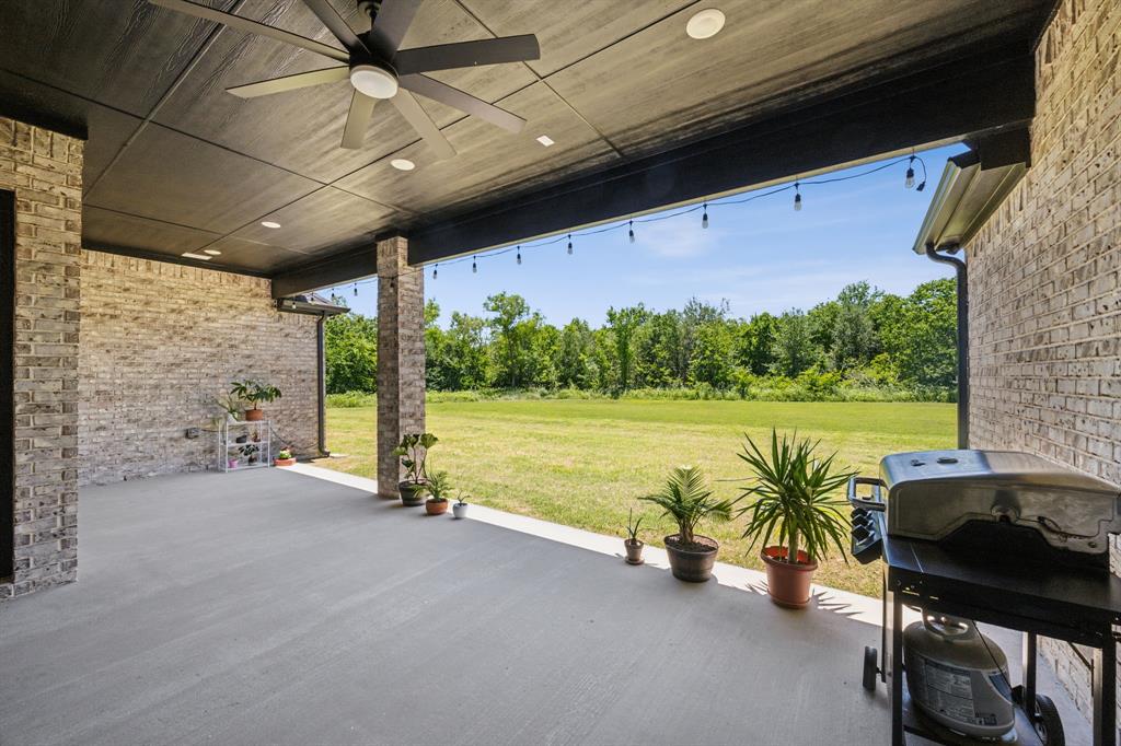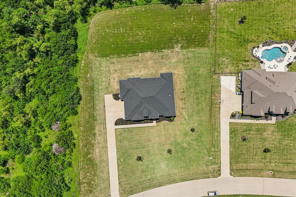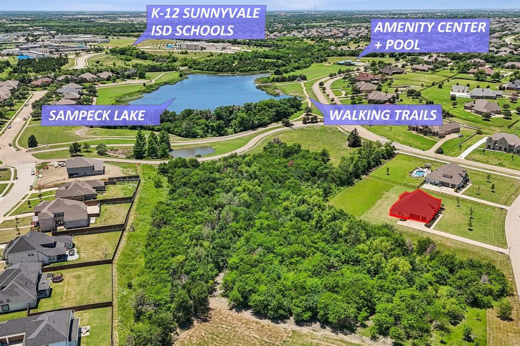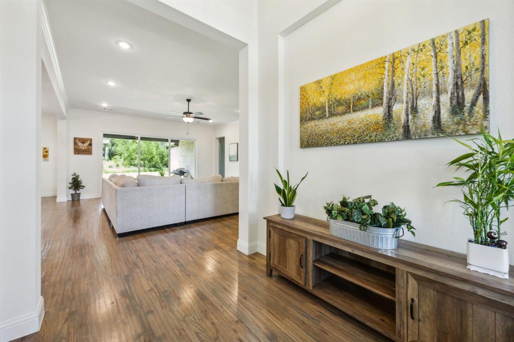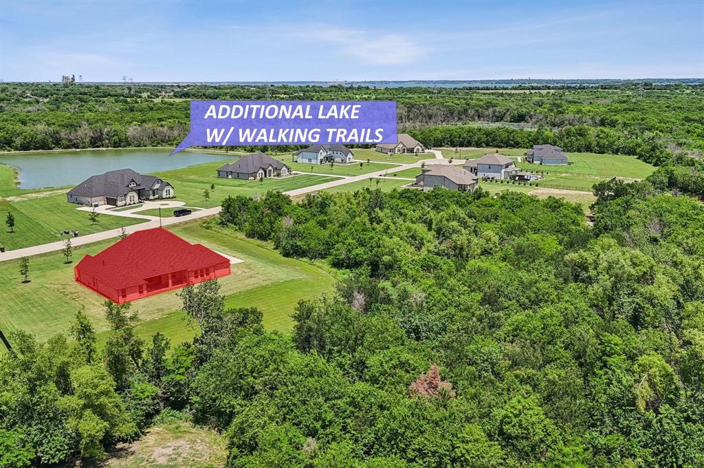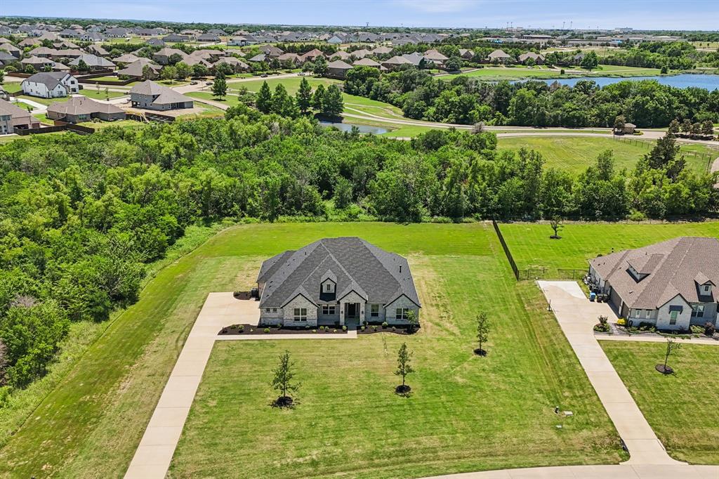 Stunning, nearly-new, single-level home anchored on over 1 acre, tucked into a greenbelt! With community trails, lakes, a clubhouse and pool within walking distance, this property is private and expansive, offering quiet living a short drive from Downtown Dallas and area airports. With 5 bedrooms + office, 2.5 bathrooms, and a 3-car-garage, you'll be ready to entertain at the large and elegant kitchen island, or simply enjoy the open floor plan and indoor + outdoor living. As you enter the front door, you're given immediate line-of-sight access through the open concept kitchen, dining, and living areas, through the large windows and sliding glass doors overlooking the covered patio and tree-lined backyard -- where you might catch wildlife enjoying the surrounding greenbelt. The split bedroom layout allows for a large, private primary suite overlooking the backyard, with split vanities, a garden tub, separate shower and two walk-in closets. The other four bedrooms are roomy in size, with plenty of storage and loads of light. Other features include: a cozy fireplace, beautiful hardwoods, walk-in pantry, modern, but classic finishes, new ceiling fans in all bedrooms and on back patio, lush landscaping, and a garage with recently added storage in the closets, on the walls, and in the attic. Don’t miss this rare opportunity to own a private retreat just minutes from all Dallas has to offer!