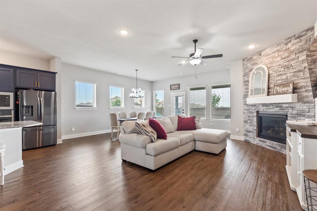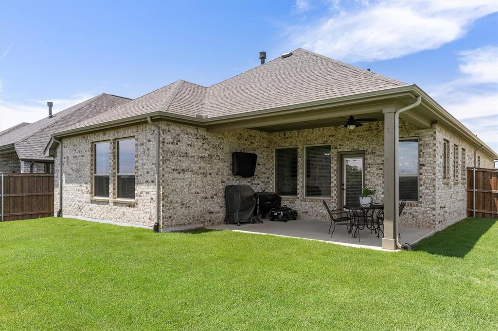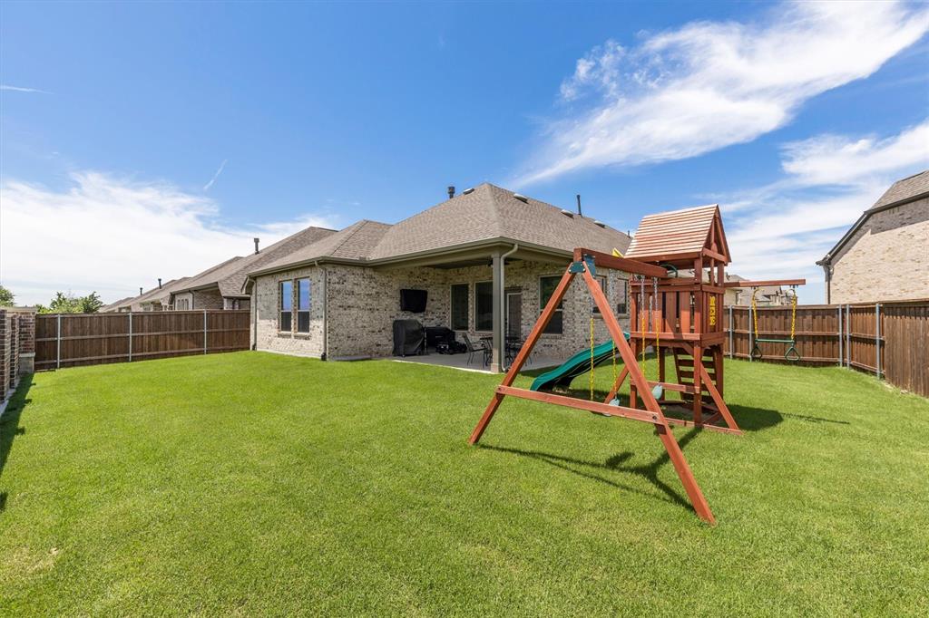 Price Improvement! Plus $6,000 Buyer Incentive! Seller offering $6,000 toward rate buy-down or closing costs with an acceptable offer — don’t miss this incredible value! Seller willing to include: Refrigerator in kitchen and garage, washer & dryer, Electric lawn mower, blower, and edger with two battery packs, play fort, TV on patio, patio furniture, storage cabinets & mounted workbench table in garage, plus ARLO doorbell with acceptable offer! Beautiful David Weekley home in sought-after Prairie Oaks, just minutes from Lake Lewisville, shopping, and dining. You’ll love the designer touches throughout — granite counters, stylish rain glass front door, and a cozy stone-look gas fireplace. Open-concept layout is perfect for entertaining! Spacious backyard with a covered porch! The private primary suite includes dual sinks, walk-in shower, and a large walk-in closet.Secondary bedrooms each have walk-in closets and share a flex space and full bath. Dedicated study area near the entry, plus a half bath and large laundry room. Chef’s kitchen features a gas cooktop, built-in oven and microwave, tons of cabinet space, and a generous island. Also available for lease MLS 21037016. Listing agent is related to sellers.