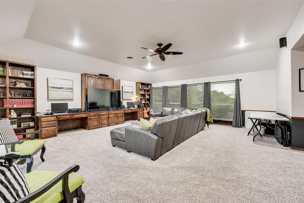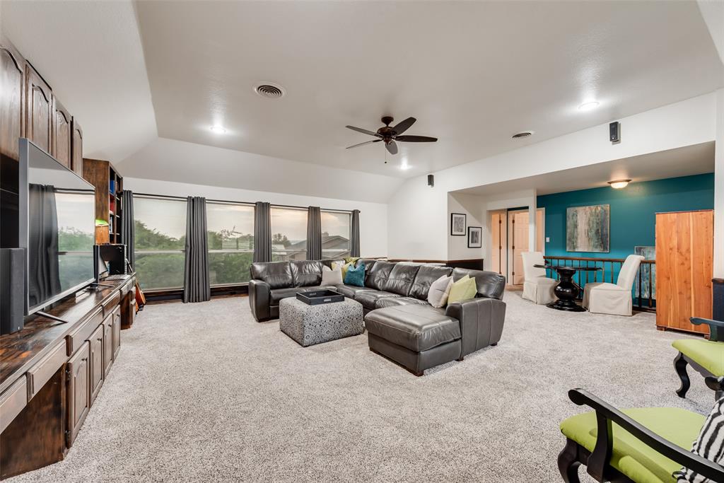 Discover timeless elegance and thoughtful design in this stunning 4-bedroom, 3-bathroom home that offers the perfect blend of comfort, style, and serenity! From the moment you arrive, the curb appeal impresses with lush landscaping, vibrant flowers, and an oversized driveway leading you to the spacious 3 car garage. Step inside to find stunning hardwood floors, vaulted ceilings, and highlights a beautiful double sided fireplace. A show-stopping kitchen features quartz countertops, a dramatic waterfall island, and custom finishes that elevate everyday living. The main primary suite is on the second floor with a balcony overlooking the lake. The second floor is complete with a large game room or bonus room, full bathroom, and additional bedroom with a loft. Downstairs features two bedrooms, one being oversized that could work as a second primary and a full bathroom. Step outside into your own private paradise. The backyard is a true sanctuary, complete with a large pool, a custom stone fireplace, and mature trees providing a very peaceful and private retreat. This home is a rare gem, located in the heart of the highly desirable Lake Country Estates, featuring rolling terrain, mature trees, lush greenbelts, and is just minutes from the tranquil shores of Eagle Mountain Lake. As a member of the HOA, enjoy exclusive access to tennis courts, a playground, a private boat launch, and a scenic waterfront park. New carpet and solid oak hardwood floors in 2021, mosquito misting system, HVAC unit replaced in 2022, smart home features for interior and exterior lighting, motorized blinds, thermostats, etc. for full list of upgrades, please ask agent.