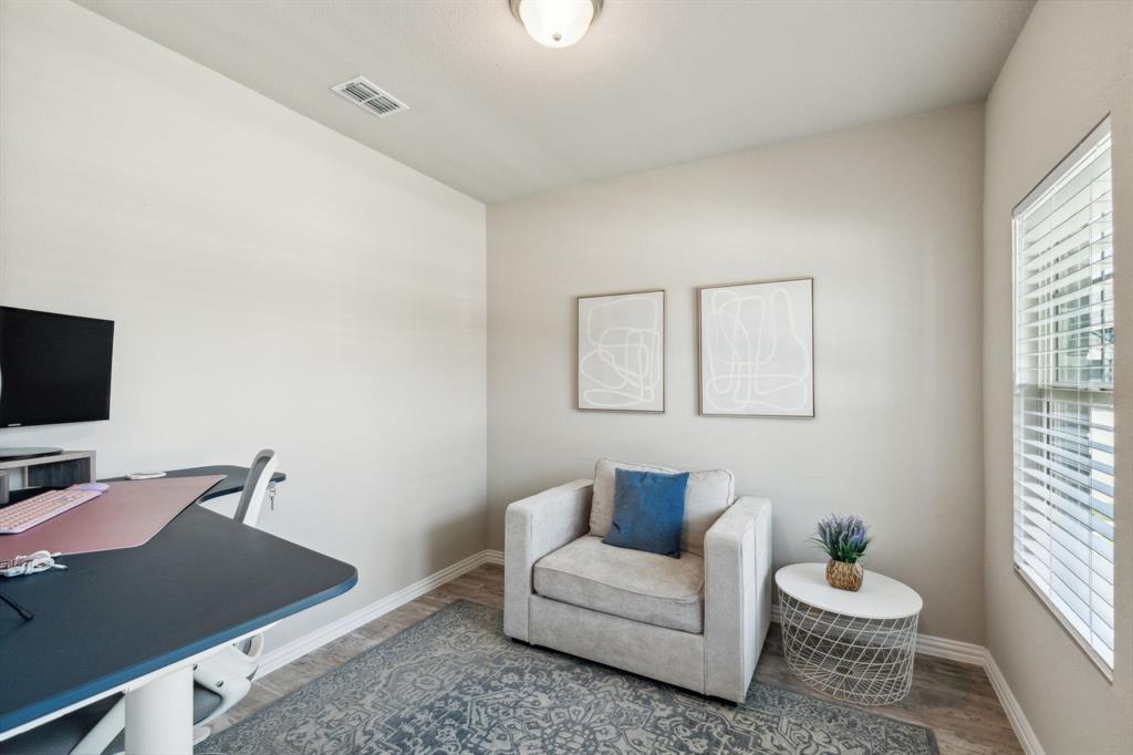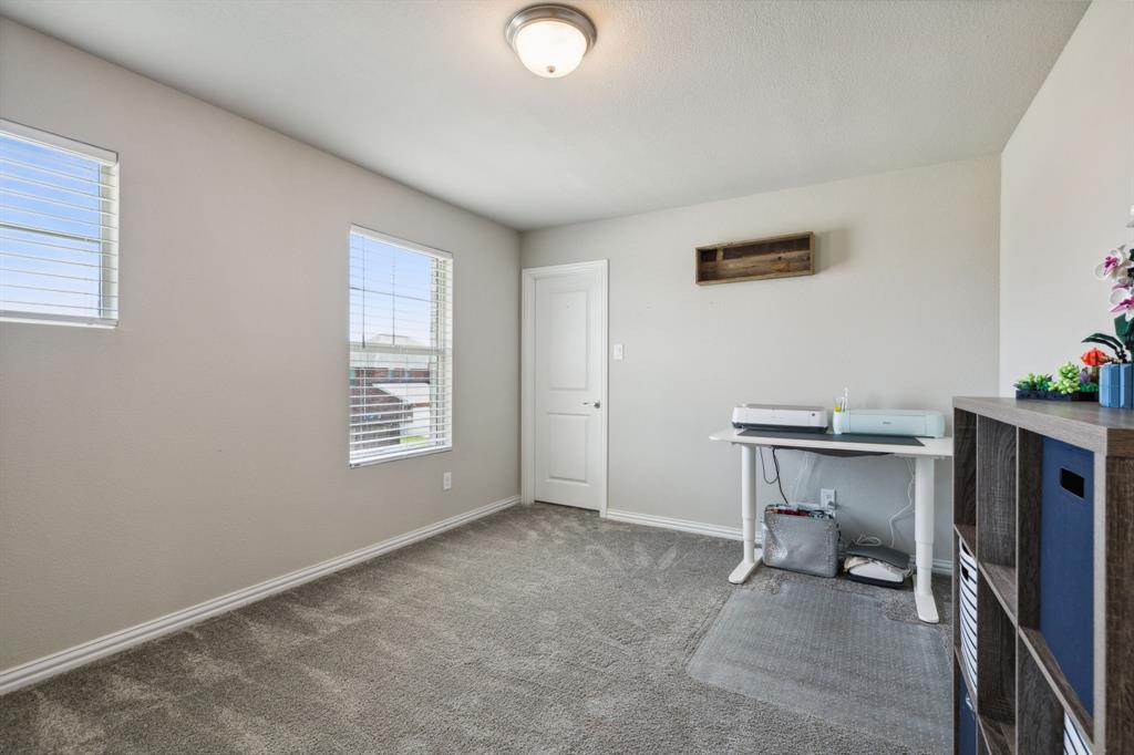 Looking for an oversized corner lot to enjoy? Looking to add a pool or just want some sprawling green space for Fido? Looking for a unique floorplan that isn't like every other home on the block? Look no further! Spacious 3 bedroom with dedicated study and two living areas in desirable master planned community of Woodcreek. Contemporary styling with light and bright color palette todays buyers are looking for. Open concept eat-in kitchen and living room is flooded with natural light, and overlooks pool sized backyard with covered patio that is ideal for outdoor entertaining. Exciting kitchen with stainless appliances, ample cabinetry, large granite island with sink and full sized walk in pantry. Primary retreat down with a luxuriously large closet and oversized shower. Upstairs features a generous secondary living room that can be used as a media room, family room or gym. Split secondary bedrooms up so everyone has space and privacy. Ideally located less than a half mile from elementary school and community pool, park, pond and dog park. Exterior jellyfish lighting. VERY gently lived in reads like new construction.