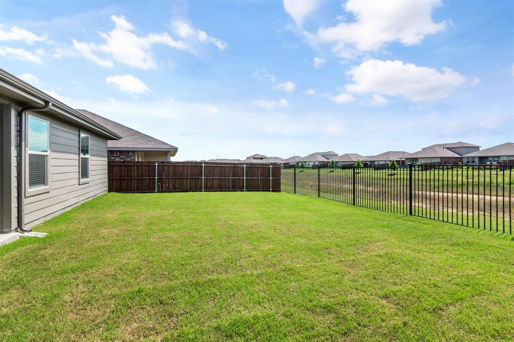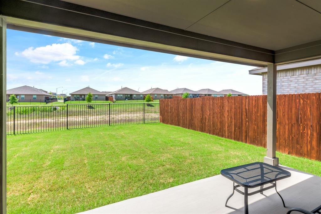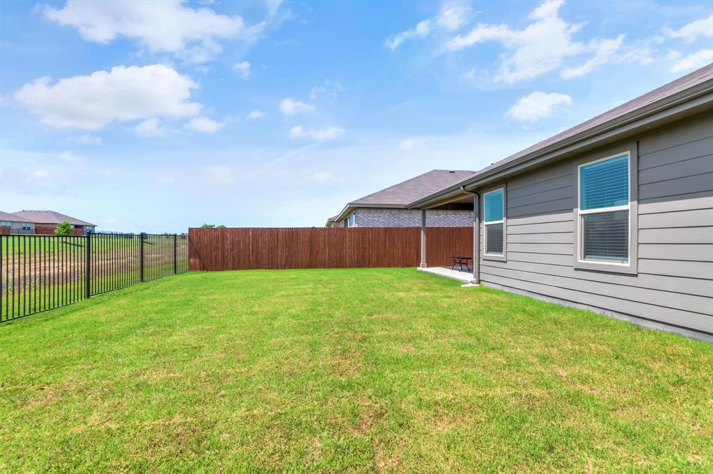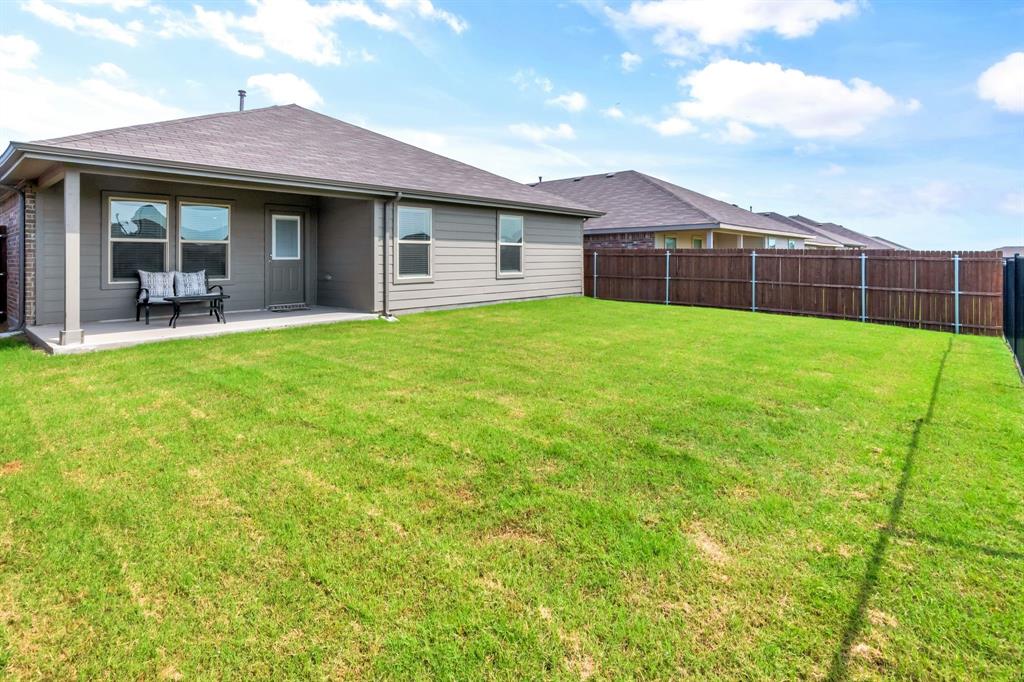 Want like new in award winning NISD? Imagine it. Step inside this pristine Camden open concept 2023 floorplan from builder DR Horton to find distinctive decorator touches. Entertain in the spacious kitchen over the ample granite island. Features include a stainless steel appliances, built-in microwave, gas range, tons of storage, and walk in pantry. Natural light flows into the front bedroom boasting a bay window. Retire to the primary bedroom with ensuite bath and relaxing spacious shower, decorator open shelving, plus TWO large walk-in closets. Sip morning coffee on the covered back porch enjoying the peaceful view of the trails and greenspace without backyard neighbors directly behind you. Enjoy fishing in the pond at the end of the street or take a dip in the resort like community pool! There are even park benches and a playground in this community. Just a few minutes from Texas Motor Speedway, Tanger Outlet Mall, and Champions Circle public golf course. Ample restaurants and activities are nearby. Additional features include: SMART Home features such as door lock, door bell, and thermostat, window blinds, tankless hot water heater, sprinkler system, security system, and gutters. Buyer and buyer's agent to verify all measurements and school information.