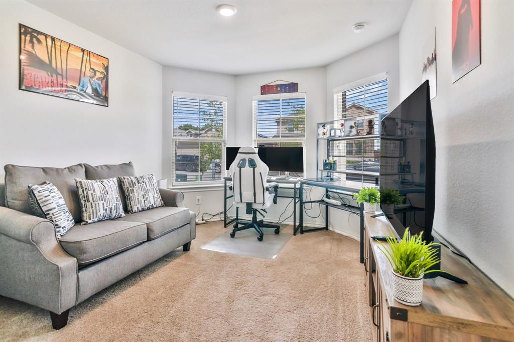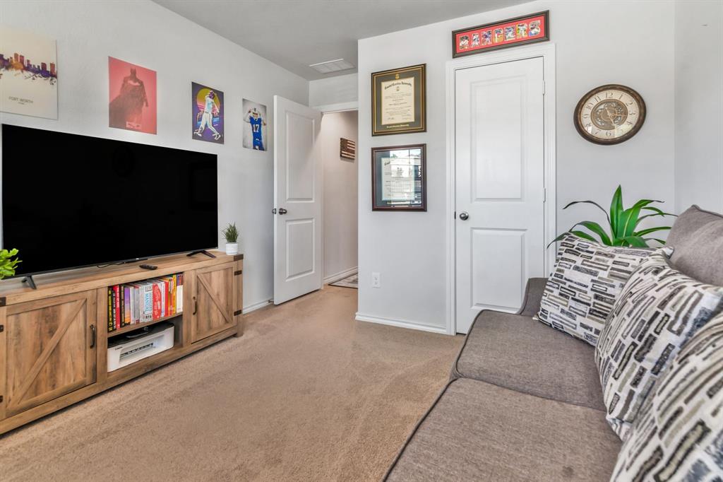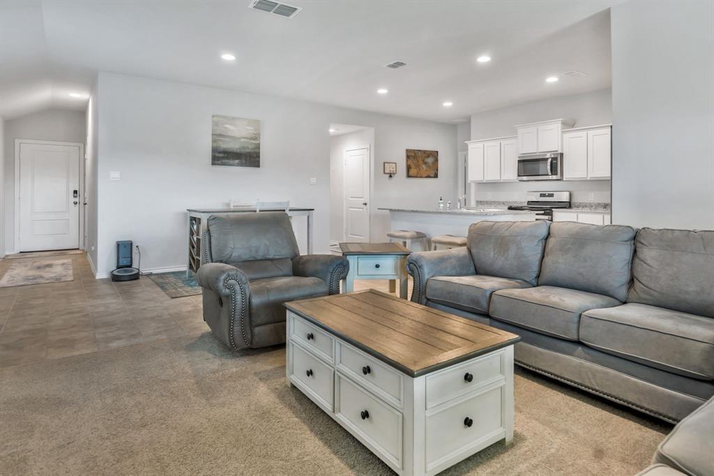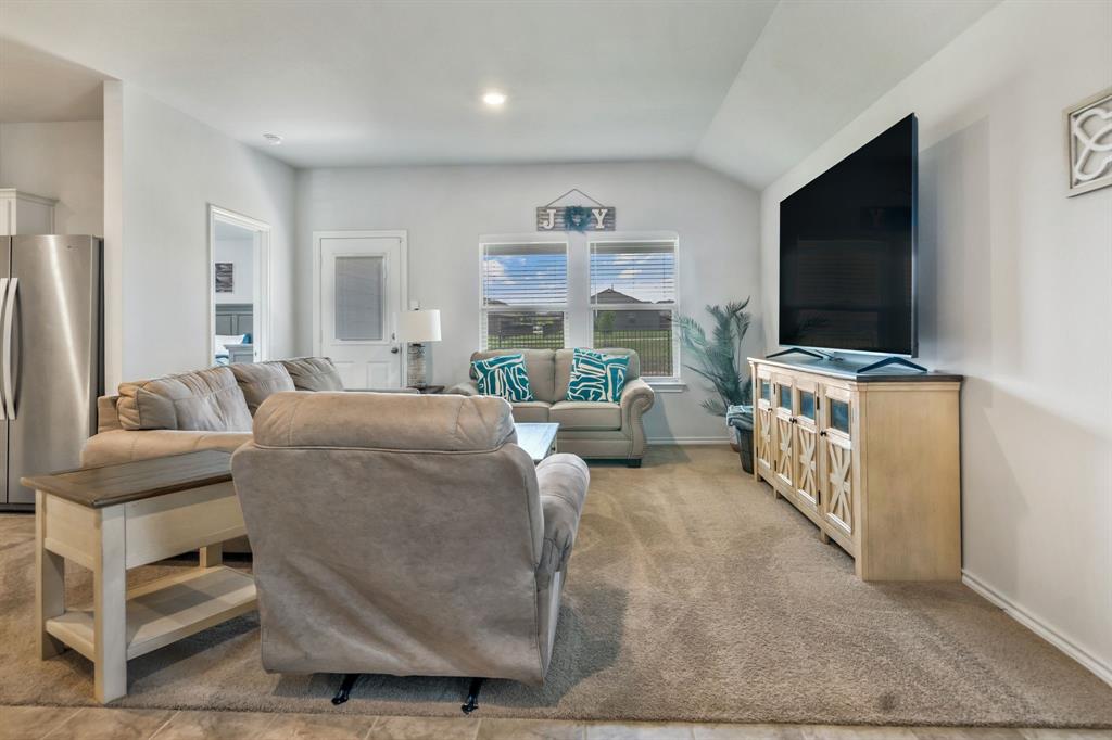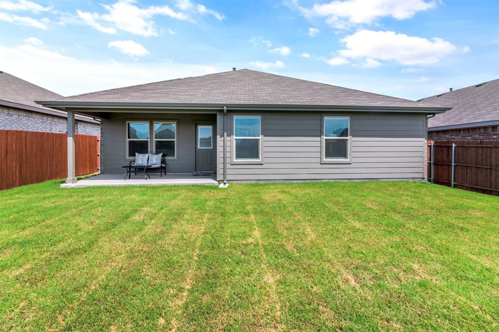 Want like new in award winning NISD? Imagine it. Step inside this pristine Camden open concept 2023 floorplan from builder DR Horton to find distinctive decorator touches. Entertain in the spacious kitchen over the ample granite island. Features include a stainless steel appliances, built-in microwave, gas range, tons of storage, and walk in pantry. Natural light flows into the front bedroom boasting a bay window. Retire to the primary bedroom with ensuite bath and relaxing spacious shower, decorator open shelving, plus TWO large walk-in closets. Sip morning coffee on the covered back porch enjoying the peaceful view of the trails and greenspace without backyard neighbors directly behind you. Enjoy fishing in the pond at the end of the street or take a dip in the resort like community pool! There are even park benches and a playground in this community. Just a few minutes from Texas Motor Speedway, Tanger Outlet Mall, and Champions Circle public golf course. Ample restaurants and activities are nearby. Additional features include: SMART Home features such as door lock, door bell, and thermostat, window blinds, tankless hot water heater, sprinkler system, security system, and gutters. Buyer and buyer's agent to verify all measurements and school information.
