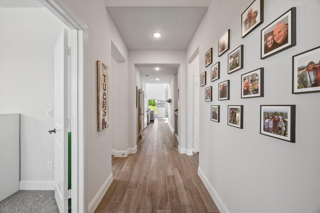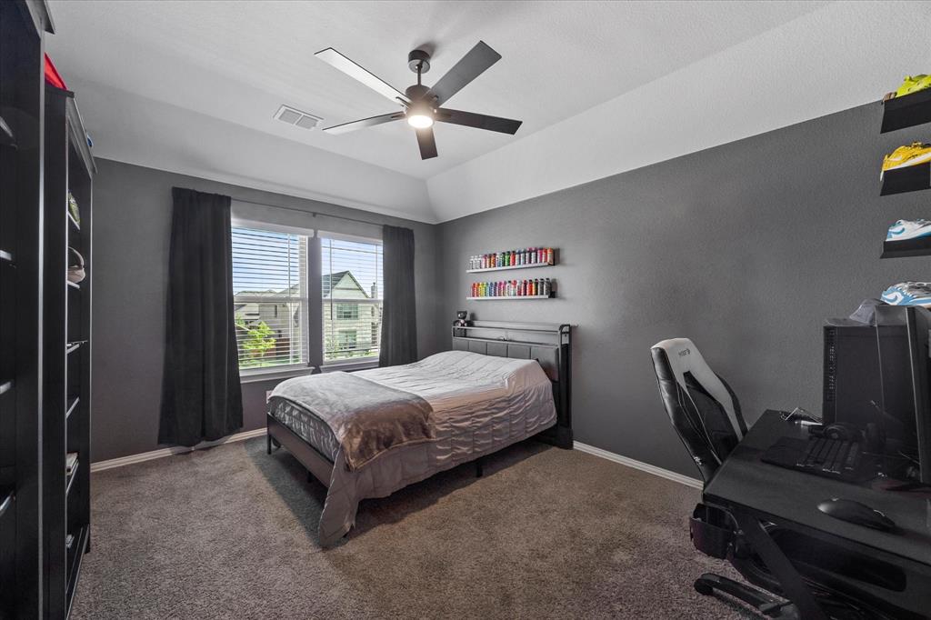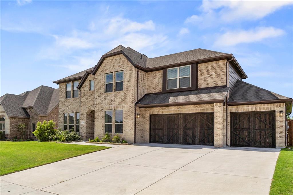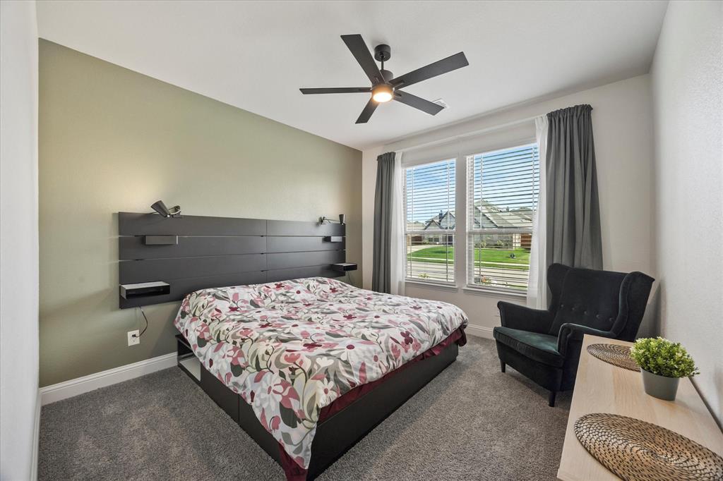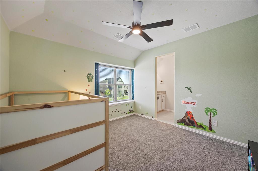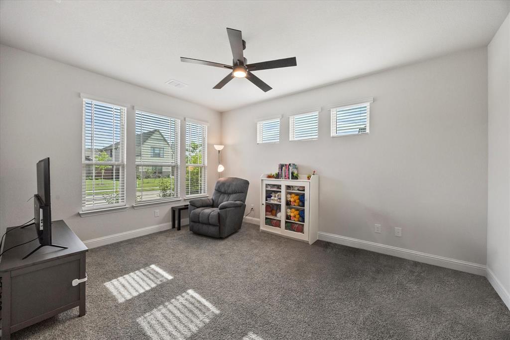 Welcome to your dream home at Bloomfield's Belltower II floor plan—a stunning two-story retreat featuring 5 spacious bedrooms and 4.5 baths. Adorned with a striking Brick exterior, this home is perfectly situated on an oversized lot, showcasing a 3-car garage, full landscaping with stone edging, cedar garage doors that makes a grand impression. Inside, elegant finishes abound, including Wood-look Tile flooring and Grey Quartz countertops that beautifully complement the crisp White Kitchen cabinetry. Entertain effortlessly in the open Breakfast area, Study, Media Room and upstairs Game Room and while the Deluxe Kitchen impresses with its island layout, Stainless Steel appliances, and a large walk-in pantry. A functional mud room adds convenience, and the vaulted ceiling & plenty of natural light in the Family Room adds to an inviting space. The spacious Primary Suite offers serene backyard views, while upstairs, three additional bedrooms with walk-in closets provide ample space for everyone. With blinds, accent exterior lighting, and access to all the amenities Bloomfield at North Grove offers, this home is the perfect blend of style and comfort.