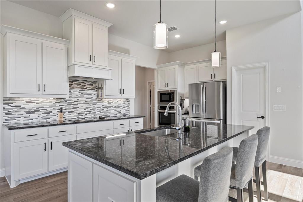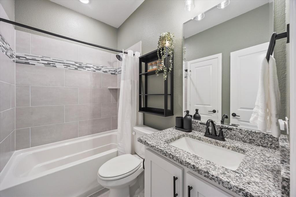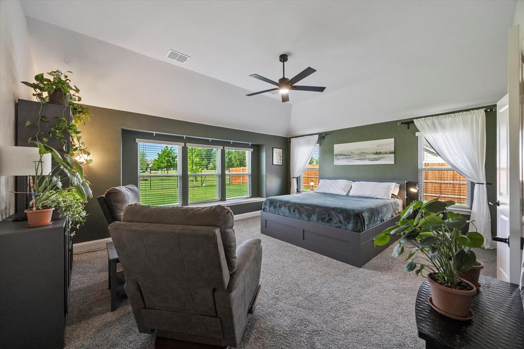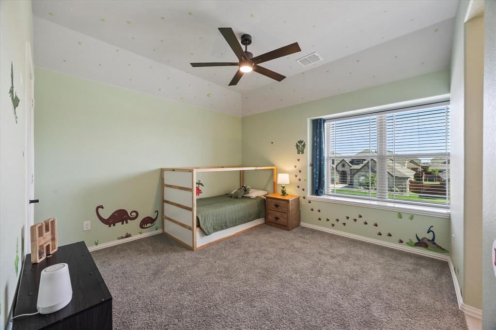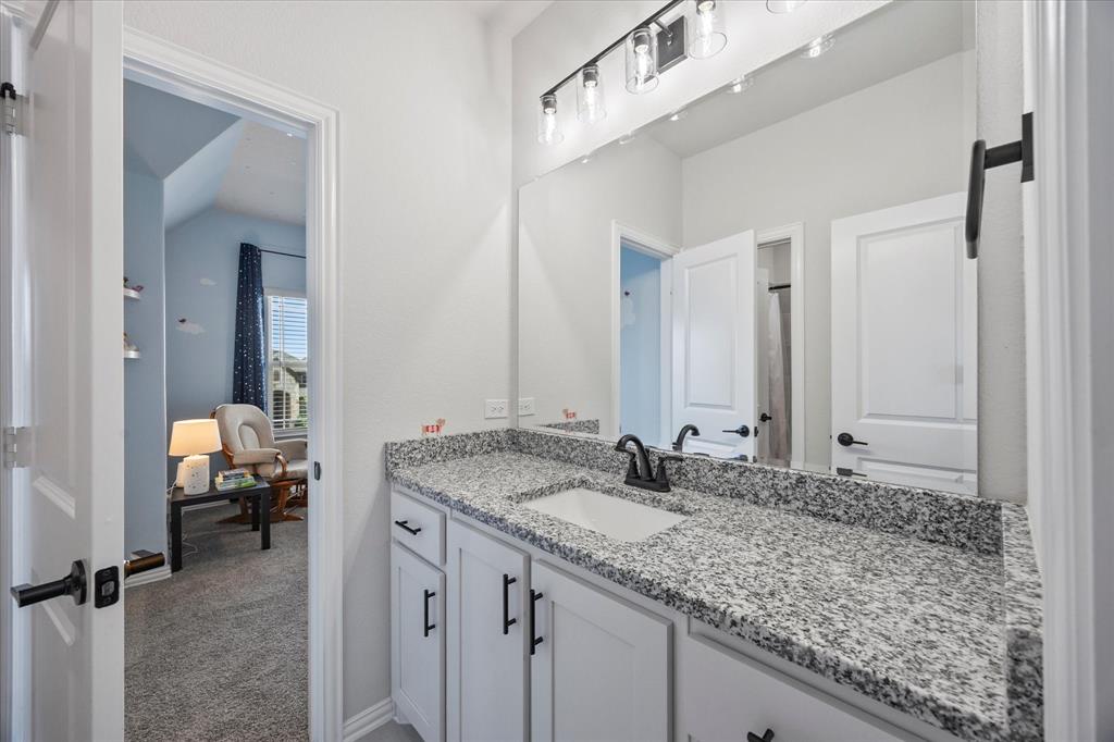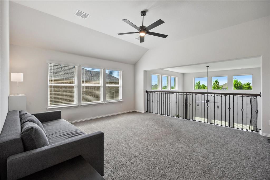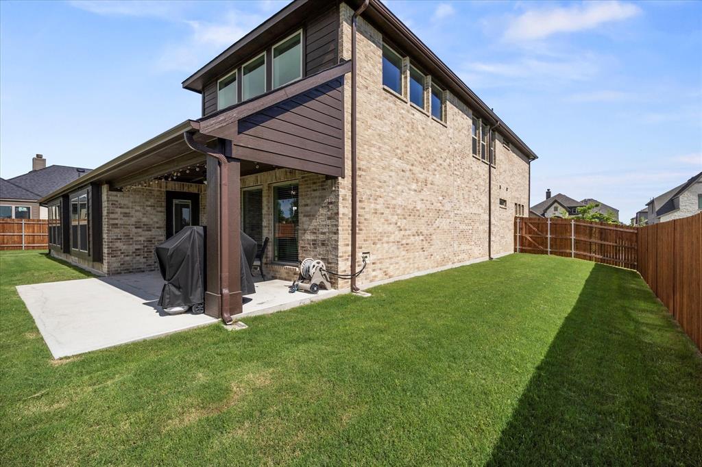 Welcome to your dream home at Bloomfield's Belltower II floor plan—a stunning two-story retreat featuring 5 spacious bedrooms and 4.5 baths. Adorned with a striking Brick exterior, this home is perfectly situated on an oversized lot, showcasing a 3-car garage, full landscaping with stone edging, cedar garage doors that makes a grand impression. Inside, elegant finishes abound, including Wood-look Tile flooring and Grey Quartz countertops that beautifully complement the crisp White Kitchen cabinetry. Entertain effortlessly in the open Breakfast area, Study, Media Room and upstairs Game Room and while the Deluxe Kitchen impresses with its island layout, Stainless Steel appliances, and a large walk-in pantry. A functional mud room adds convenience, and the vaulted ceiling & plenty of natural light in the Family Room adds to an inviting space. The spacious Primary Suite offers serene backyard views, while upstairs, three additional bedrooms with walk-in closets provide ample space for everyone. With blinds, accent exterior lighting, and access to all the amenities Bloomfield at North Grove offers, this home is the perfect blend of style and comfort.