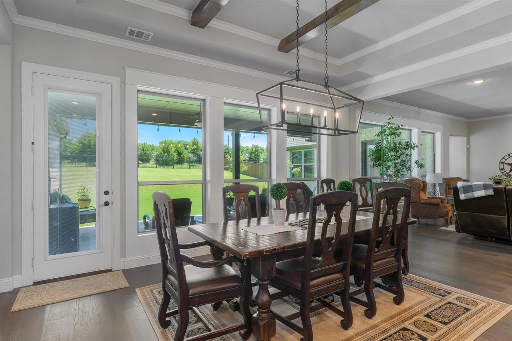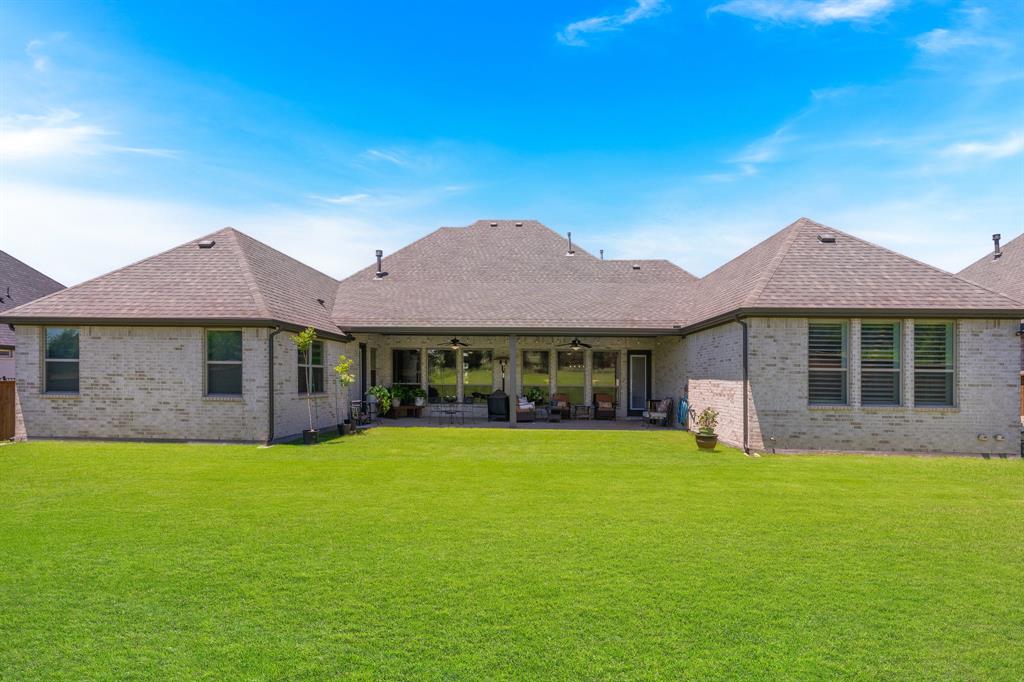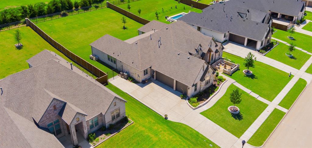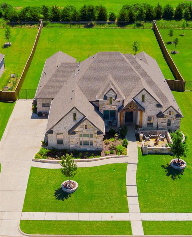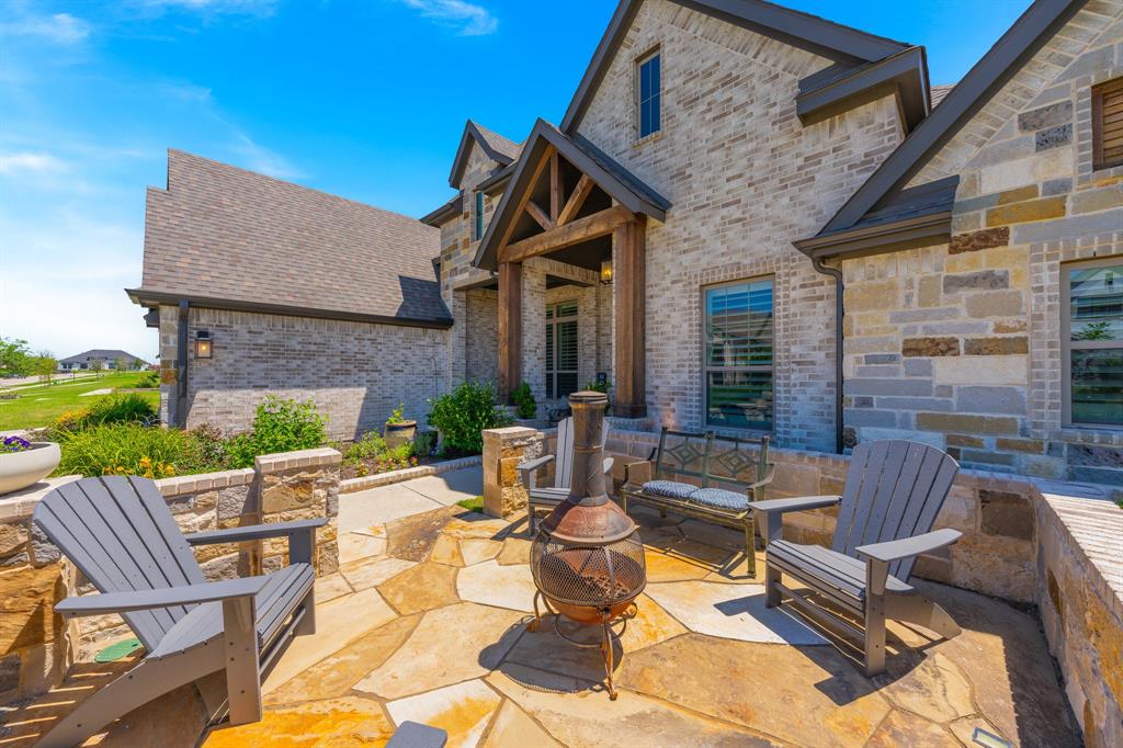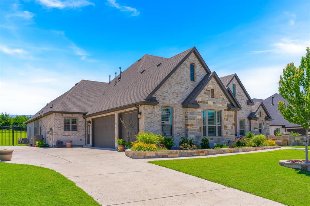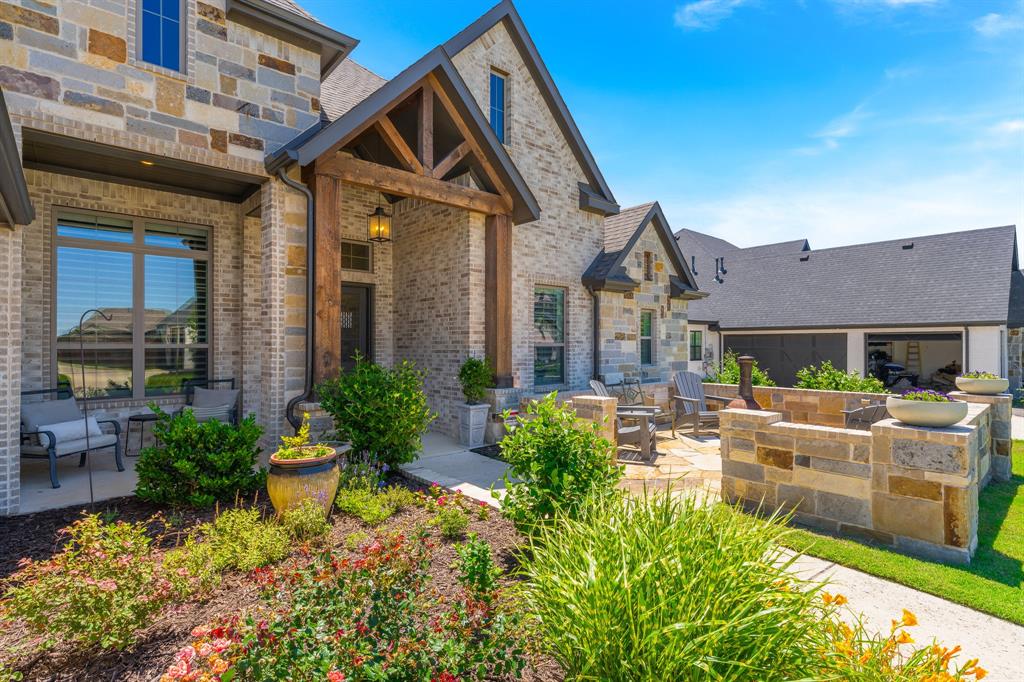 Exceptional value: priced $59,300 below the county's tax assessed value! Welcome to your dream home, where timeless elegance meets Texas charm. This exceptional 4-bedroom, 3.5-bath, three-car garage residence is nestled on a spacious 0.51-acre lot and offers stunning curb appeal with a blend of stone and brick façade, steep gabled rooflines, and a custom-built courtyard. Inside, you will find soaring ceilings, wood accent beams, and designer finishes throughout creating an inviting, light-filled atmosphere perfect for everyday living and entertaining. The primary bedroom is a private retreat complete with walk-in shower, freestanding tub, spacious walk in closet and separate vanities. Enjoy the open-concept living areas with friends while utilizing the gourmet kitchen featuring stainless steel appliances, oversized quartz island, and granite back countertops. High-end extras include: 4’ plantation shutters, a built-in bookcase in the office, zebra roller shades, and walk-in closets throughout. Cozy up to your custom stone fireplace in the winter, or retreat to your oversized porch and spacious backyard on warmer nights. Don't miss your chance to make this exceptional property yours!