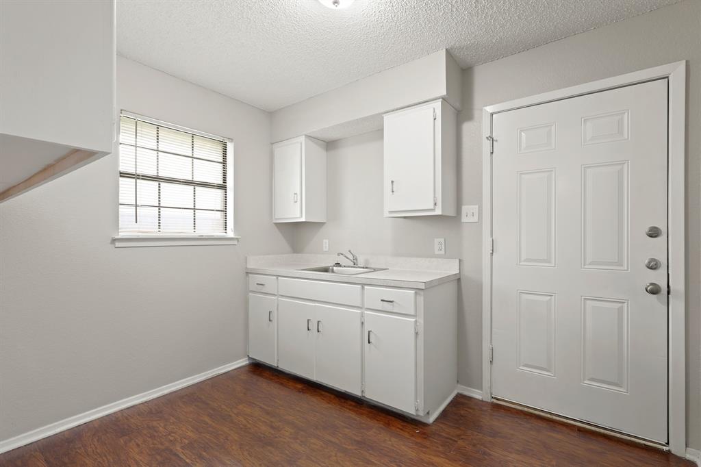A separate laundry room with a sink and additional cabinets adds to the home's functionality, while the secondary bedroom, complete with plush carpeting, offers generous space for guests or a home office.