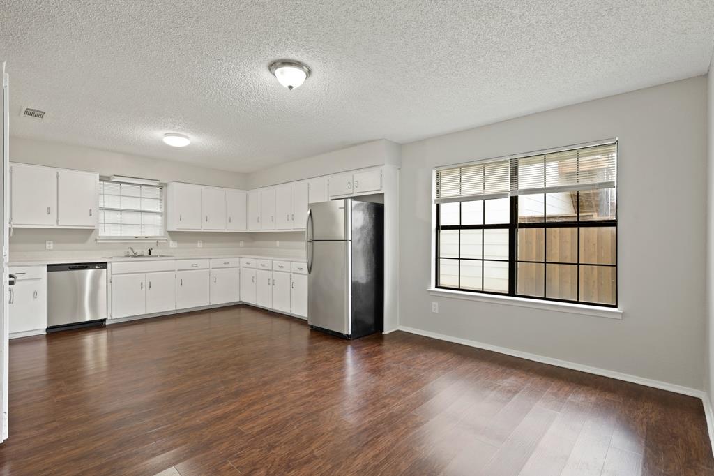 Step inside to discover an open-concept kitchen adorned with white cabinetry, stainless steel appliances (all included!), and classic blinds—perfect for entertaining or everyday living. Just off the kitchen, you'll find a cozy dining area ideal for meals.