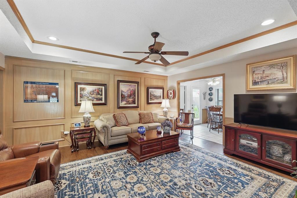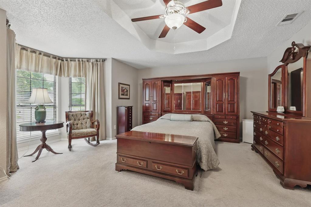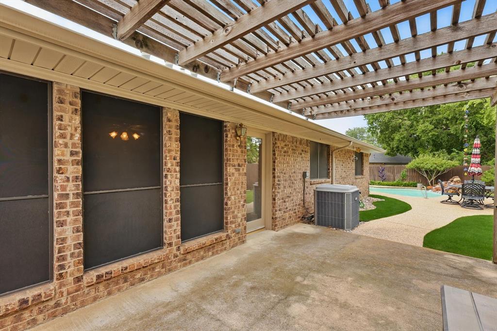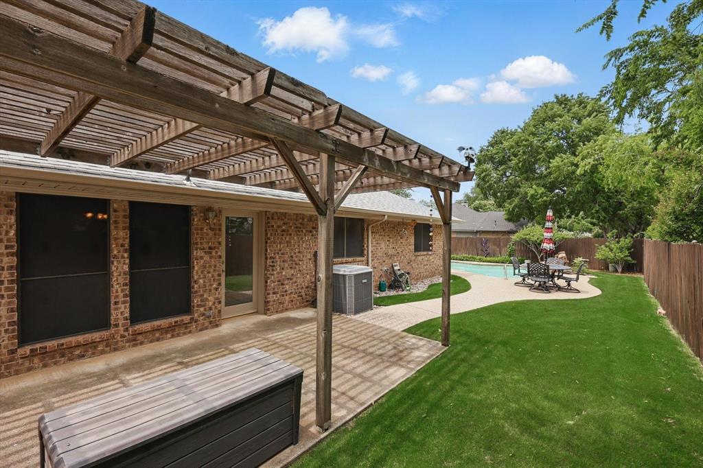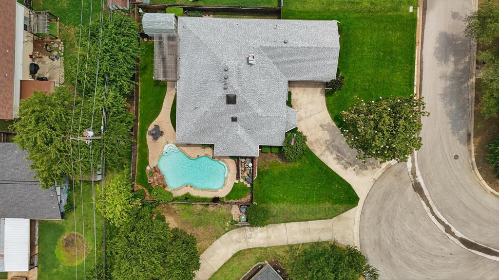 Meticulously maintained one story home in the sought after school district of Marcus High School. This home has 3 bedrooms with a den that can be a 4th bedroom since it has a closet and ensuite half bathroom. The formal dining room is great for entertaining and has access to the kitchen. The Breakfast Room located in the kitchen which has an abundance of cabinets, gas cook top, electric range and dishwasher. The living room has a cozy brick fireplace and a mirrored wet bar. The Primary Suite boasts a bay window, sitting area and a walk in 12 X 9 closet with a sky light. The primary bathroom has an additional closet, dual sinks, separate vanities, walk in shower and linen closet. After a long day, unwind on the covered patio and enjoy the pristine swimming pool with a relaxing waterfall and lush landscaping. Make this your next home sweet home!