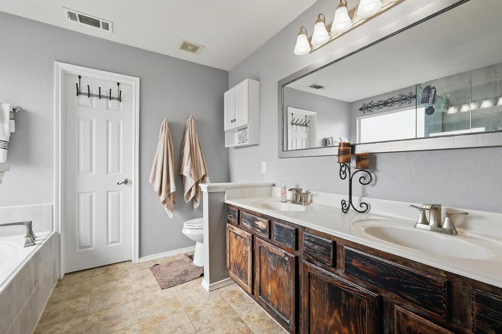 WELCOME to this beautiful home located on a LARGE corner lot with side entry garage. Wonderful curb appeal greets you as you drive up. Step inside where pride of ownership shines in this spacious home! The large downstairs family room is open to the breakfast and kitchen which features updated fixtures, new tile countertops with protective epoxy, kitchen island with newer paint stays as well! Upstairs features a nice sized bonus room, HUGE primary bedrooom with dual sinks, large garden tub, gorgeous updated shower and large walk-in closet. There are 2 nice sized secondary bedrooms that share a bath. Moving outside to the backyard this well manicured yard has SO much space, even room for a pool, large covered patio, hot tub can stay if you would like and 2 outdoor storage sheds! WELCOME HOME! Please see full list of recent updates and upgrades. SELLER OFFERING $2K FOR RATE BUY DOWN WITH EXCEPTED OFFER!