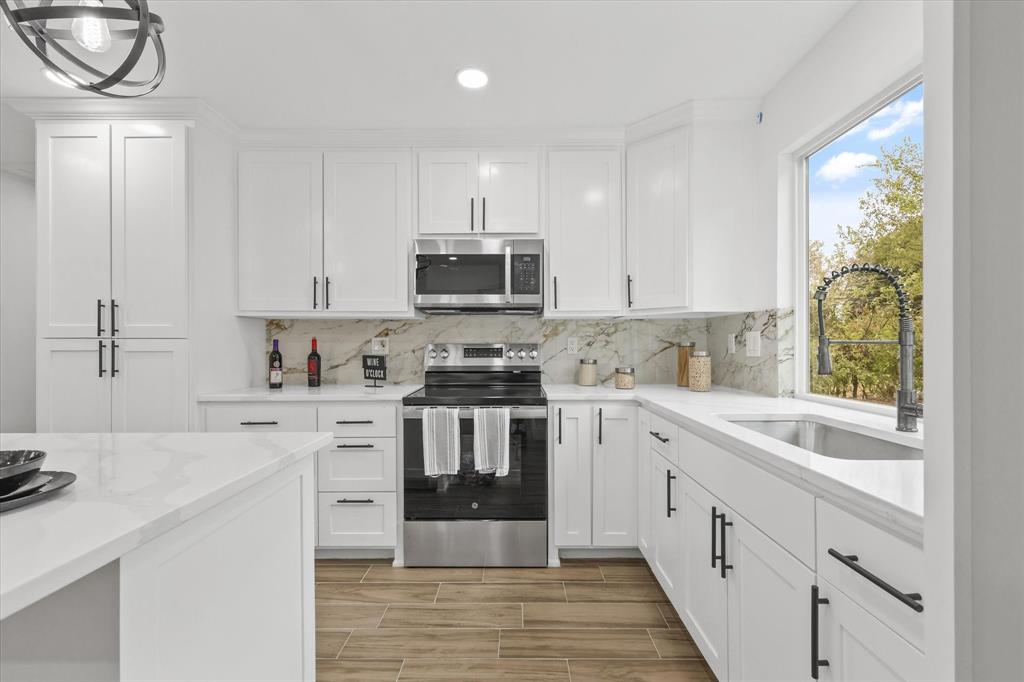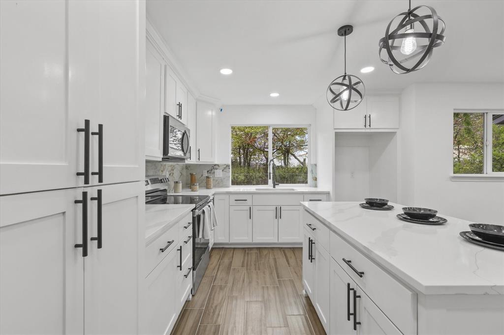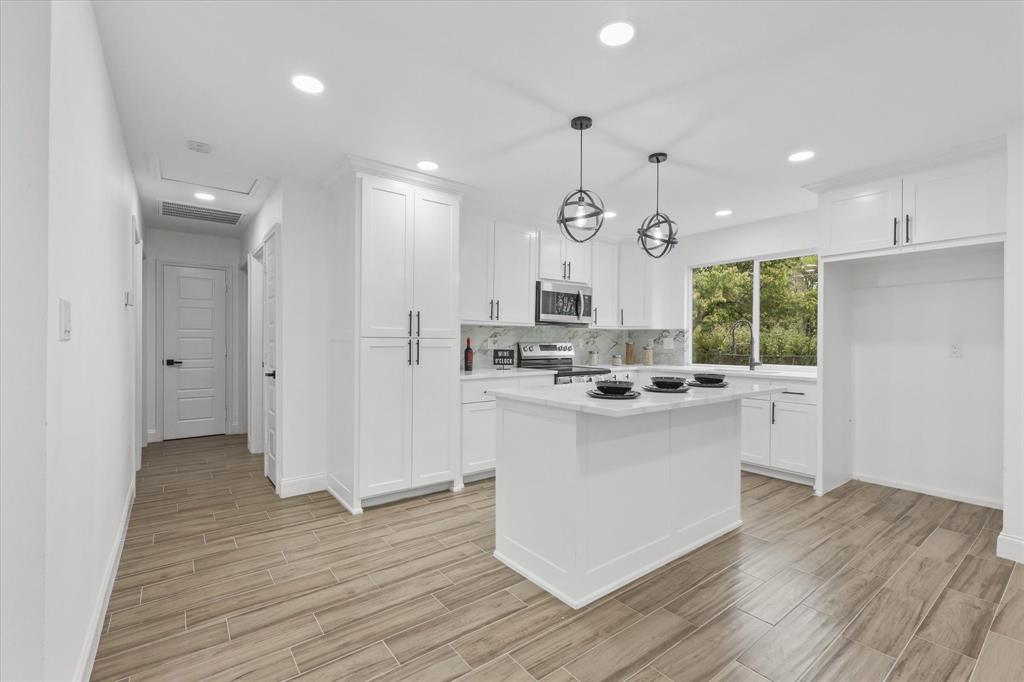 Fabulous mid-century vibes with this incredible, beautifully remodeled 4 bedroom, 2 bath home in an established neighborhood. Floorplan features a beautiful entrance and open concept living perfect for entertaining and everyday living. Gourmet kitchen is equipped with beautiful white cabinets with granite countertops, tile backsplash, new stainless steel appliances, and an island that overlooks the sophisticated dinning room and comfortable living room. Serene master suite boasts walk-in shower and spacious walk-in closet. Nice size backyard with patio perfect for bbq-ing and pets. Other upgrades include: light fixtures, new flooring, and new paint throughout. Completely ready for new owners to create lifetime memories!