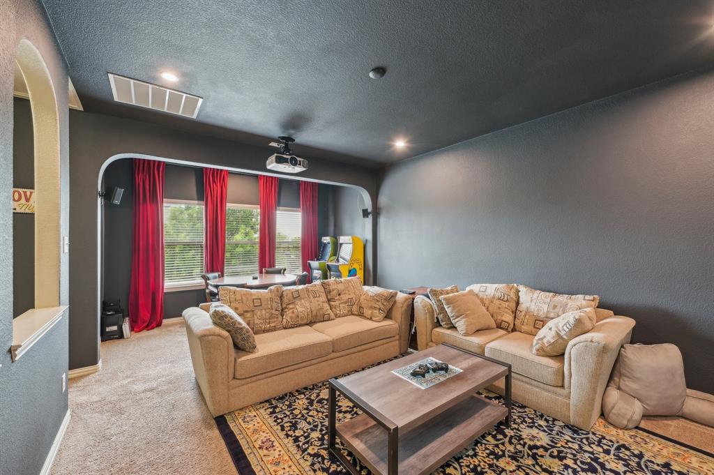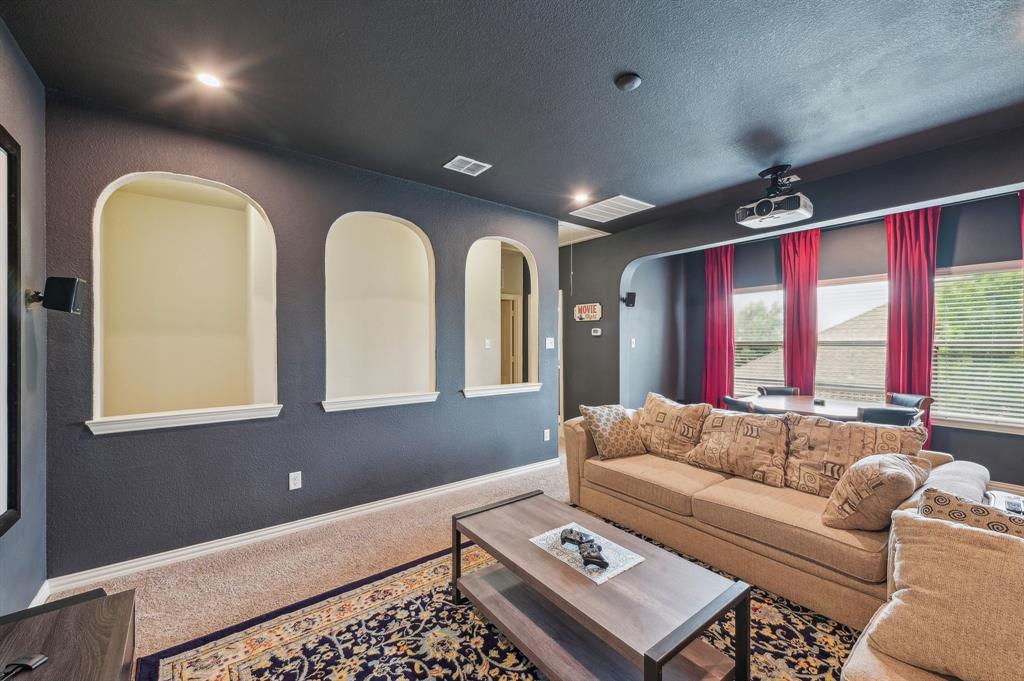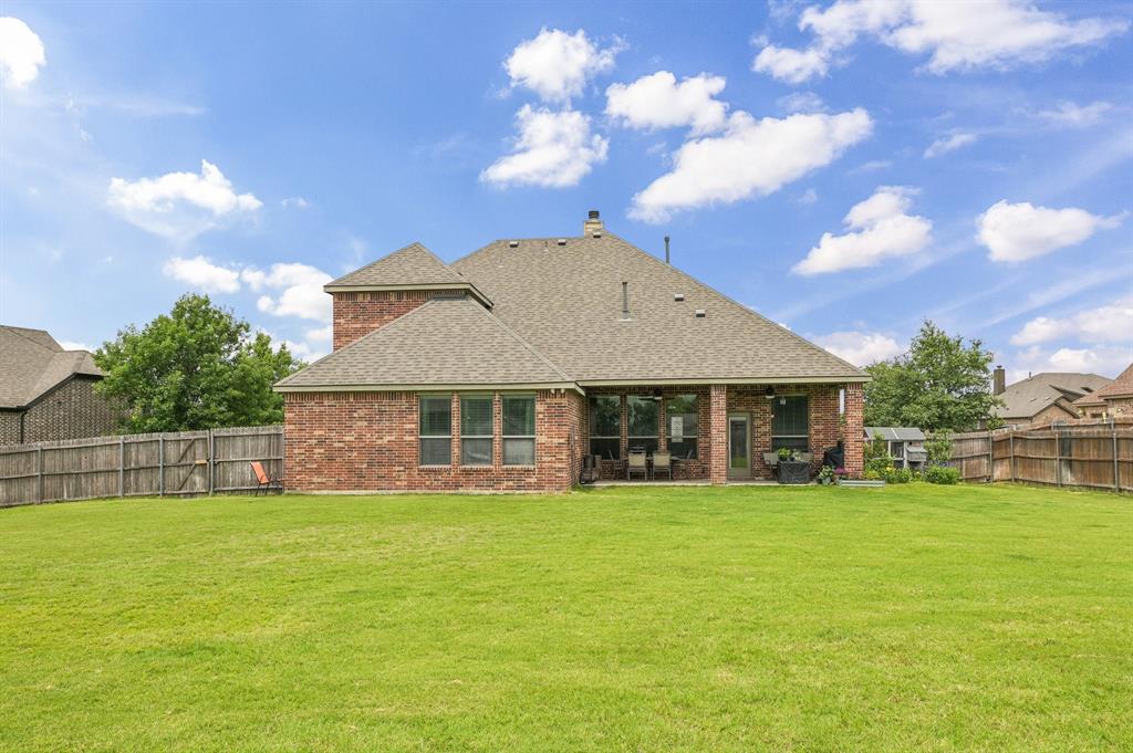 $1,500 in FLEX CASH!! Use towards UPGRADES, VACATION or CLOSING COSTS. Located in the highly sought-after Saddlebrook Estates in Waxahachie, this stunning brick home sits on a spacious .372-acre lot and offers the perfect blend of elegance and modern convenience. Step into an inviting open-concept floor plan with stylish and durable LVP flooring throughout the main living areas. Permanent outdoor GEMSTONE lighting provides customizable colors with a phone app you can control from anywhere. The bright and airy living space features a cozy fireplace, ideal for relaxing evenings, and flows seamlessly into a chef-friendly kitchen and dining area, perfect for entertaining. A dedicated home office provides a quiet workspace, while the spacious master bedroom offers a relaxing retreat with plenty of room to unwind. Movie nights are unforgettable in the media room, complete with a projector screen and theatre-style dimmable lighting. Enjoy outdoor living under the covered patio, overlooking a large backyard with plenty of space for play or gardening. The 3-car garage ensures ample storage and convenience. Community amenities include access to a sparkling community pool, adding to the neighborhood’s appeal. This home truly has it all—space, style, and a prime location in one of Waxahachie’s most desirable communities.