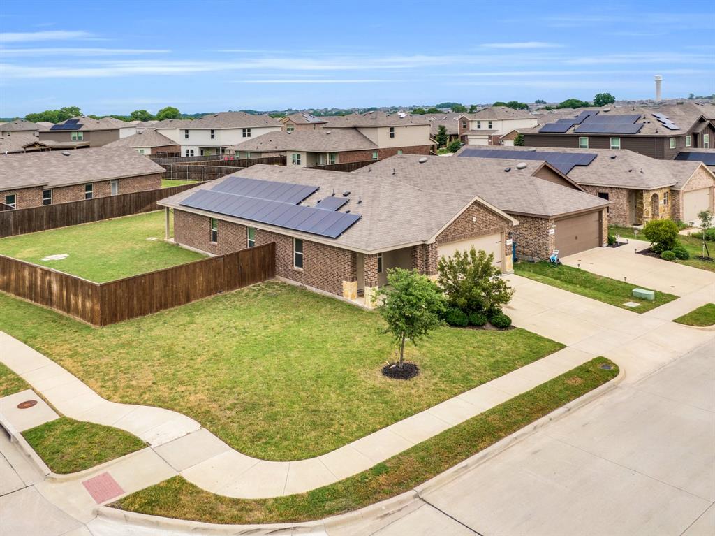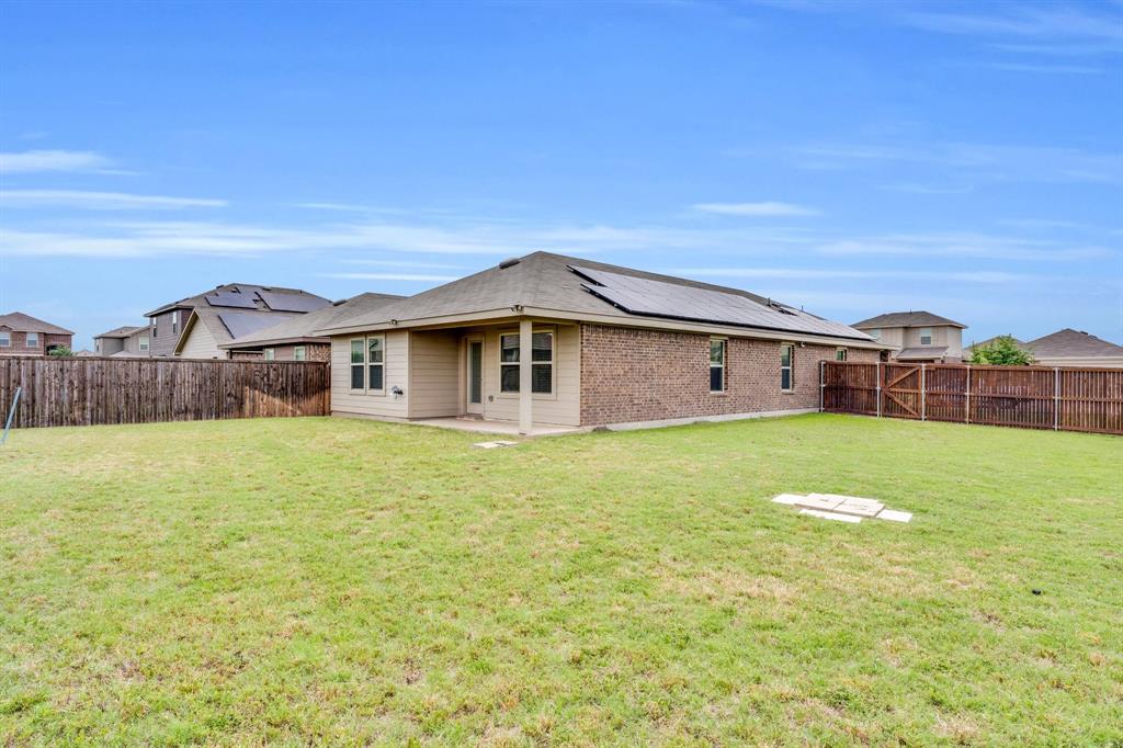 Back on the market—buyer’s financing fell through. One of the BEST DEALS in Travis Ranch! This CHARMING 4-Year-old, 3-2-2 home nestled on an OVERSIZED CORNER LOT offers EXCEPTIONAL VALUE and ENERGY EFFICIENCY with SOLAR PANELS PAID OFF BY OWNER at closing and thoughtful UPGRADES throughout. This home features OPEN-CONCEPT living, elevated ceilings and luxury vinyl tile flooring in the kitchen, living and foyers. The eat-in kitchen is a CHEF's DREAM with GRANITE countertops, a large ISLAND, walk-in pantry, and STAINLESS STEEL appliances, including a FRENCH DOOR REFRIGERATOR with ICEMAKER. ALL APPLIANCES, including REFRIGERATOR, WASHER, and DRYER STAY! The primary en-suite has a roomy shower, open shelving, and a walk-in closet. A split bedroom floorplan provides added privacy. The garage boasts DURABLE, EPOXY FLOORS, and the laundry room has built-in cabinets and custom WOOD shelving. SMART FEATURES include a SECURITY SYSTEM, SMART THERMOSTAT and RING DOORBELL. The home is WIRED FOR A GAS GENERATOR for additional peace of mind. The ROOF was inspected and repaired in June! This home is eligible for a USDA loan, which provides the option of 100% financing!
