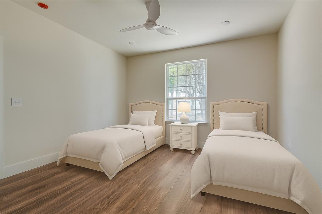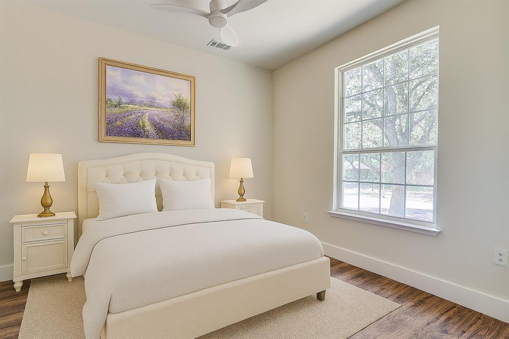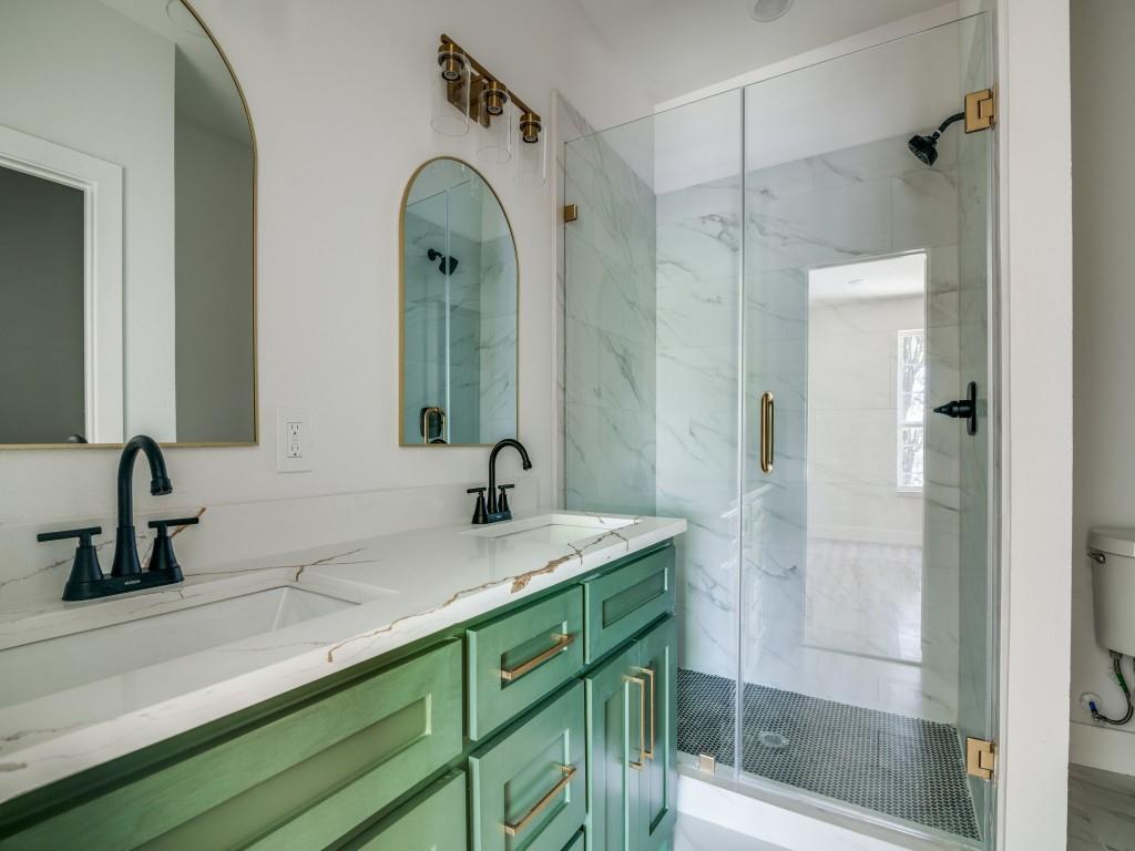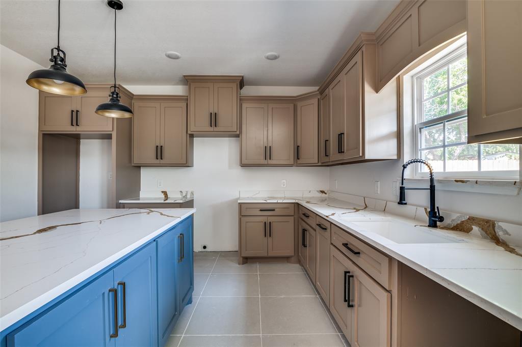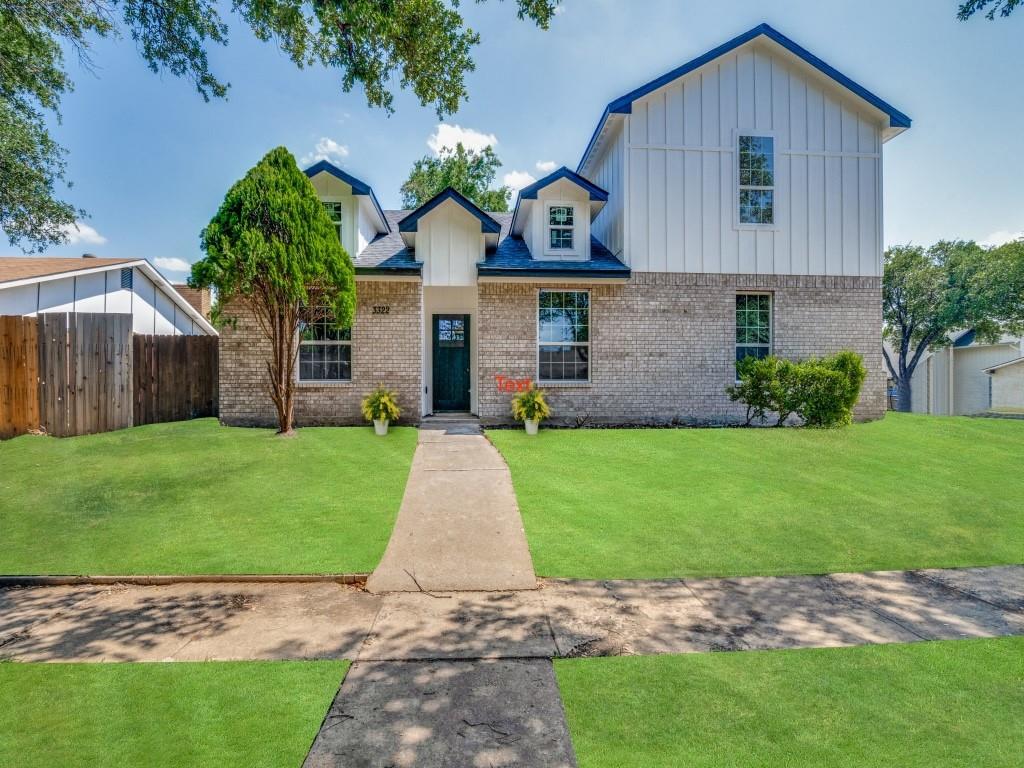 Welcome to 3322 Collins Blvd, an exquisite example of modern elegance and traditional charm. This stunning new construction by Martha Harrington is situated on a delightful corner lot in Garland. With its sophisticated design, this 4-bedroom, 3-bathroom brick home seamlessly combines timeless curb appeal with contemporary living. Upon entering, you'll be greeted by an inviting space that feels like home. The well-thought-out floor plan offers 2,166 square feet of living space, including two bedrooms downstairs, among them a spacious primary suite, and two additional bedrooms upstairs. This layout provides ample room for families, guests, or multi-generational living. At the heart of the home lies a classic kitchen, highlighted by warm, earthy cabinetry and a striking Calacatta Brown quartz island. This space flows effortlessly into open-concept living and dining areas, creating the perfect setting for both relaxing and entertaining. The quartz surfaces continue into all three bathrooms, enhancing the home's cohesive design and understated luxury. Large windows throughout the home frame serene views of mature trees, infusing each room with natural light and a touch of nature. An upstairs flexible landing offers an adaptable space for a home office, gym, or media lounge, tailored to fit your lifestyle needs. Outside, the expansive backyard is a blank canvas for your dreams—whether you envision a pool, a custom patio, or simply enjoying the vast green space under the Texas sun. The rear-entry two-car garage and additional driveway space for over eight vehicles ensure practicality and ease of use. Located just minutes from golf courses, scenic parks, and bike trails, 3322 Collins Blvd offers the perfect blend of tranquility and convenience. Here, you're not just finding a house—you're discovering a home built for lasting memories, graceful living, and new beginnings.