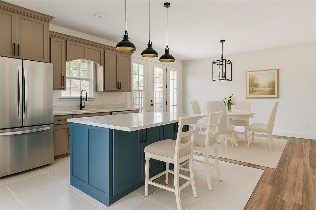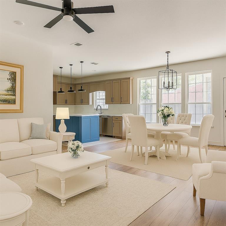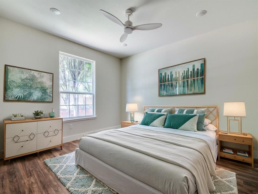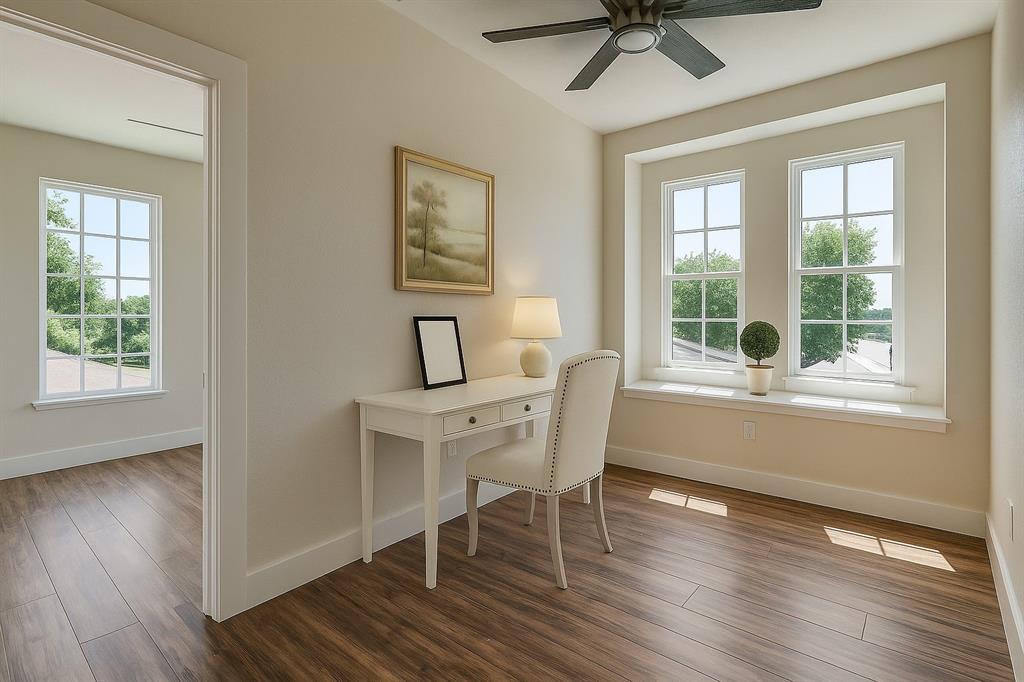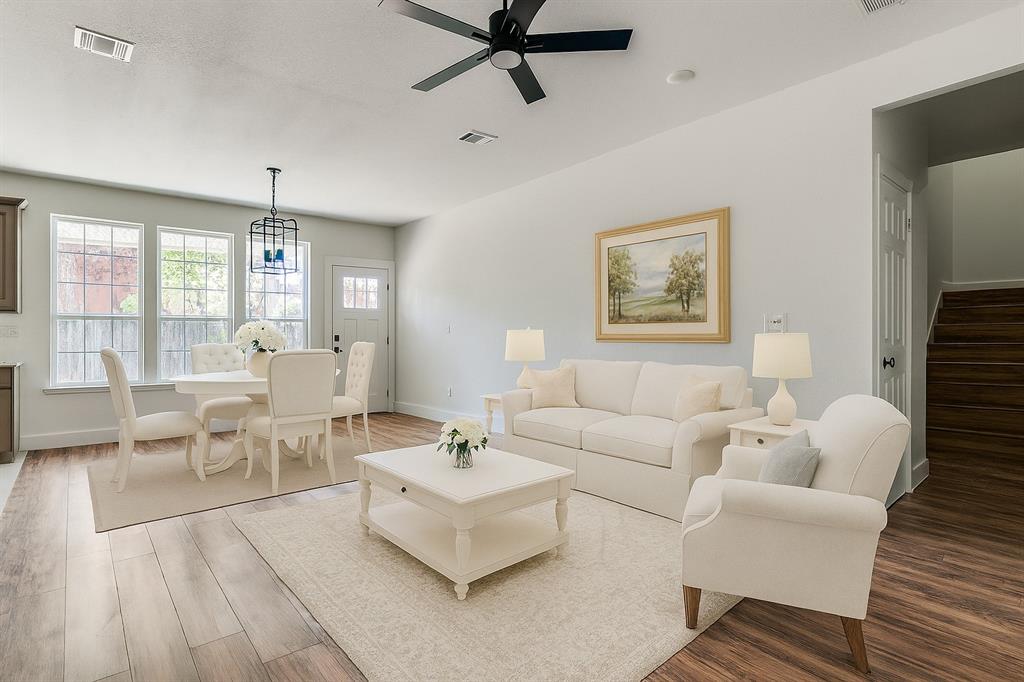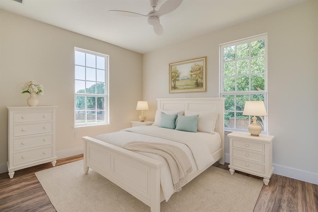 Welcome to 3322 Collins Blvd, an exquisite example of modern elegance and traditional charm. This stunning new construction by Martha Harrington is situated on a delightful corner lot in Garland. With its sophisticated design, this 4-bedroom, 3-bathroom brick home seamlessly combines timeless curb appeal with contemporary living. Upon entering, you'll be greeted by an inviting space that feels like home. The well-thought-out floor plan offers 2,166 square feet of living space, including two bedrooms downstairs, among them a spacious primary suite, and two additional bedrooms upstairs. This layout provides ample room for families, guests, or multi-generational living. At the heart of the home lies a classic kitchen, highlighted by warm, earthy cabinetry and a striking Calacatta Brown quartz island. This space flows effortlessly into open-concept living and dining areas, creating the perfect setting for both relaxing and entertaining. The quartz surfaces continue into all three bathrooms, enhancing the home's cohesive design and understated luxury. Large windows throughout the home frame serene views of mature trees, infusing each room with natural light and a touch of nature. An upstairs flexible landing offers an adaptable space for a home office, gym, or media lounge, tailored to fit your lifestyle needs. Outside, the expansive backyard is a blank canvas for your dreams—whether you envision a pool, a custom patio, or simply enjoying the vast green space under the Texas sun. The rear-entry two-car garage and additional driveway space for over eight vehicles ensure practicality and ease of use. Located just minutes from golf courses, scenic parks, and bike trails, 3322 Collins Blvd offers the perfect blend of tranquility and convenience. Here, you're not just finding a house—you're discovering a home built for lasting memories, graceful living, and new beginnings.