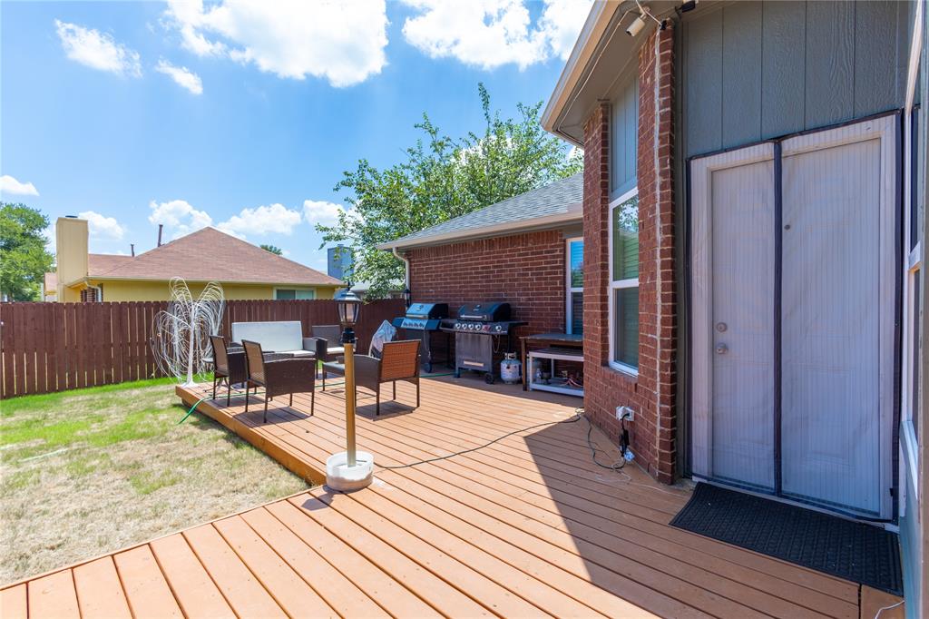 This move-in-ready gem features a spacious backyard with a brand-new 24’ x 14’ wooden deck and new wood privacy fence—perfect for entertaining or relaxing. Inside and out, the home has been fully updated with a new roof and gutters (30-year warranty), new HVAC system (10-year warranty), new plumbing and electrical systems, new water heater (9-year warranty), new garage doors with insulation and hardware, all new windows and doors, fresh paint throughout, a beautiful marble fireplace, and sleek new countertops in the kitchen and bathrooms. A freshly landscaped flower garden adds even more charm to this exceptional property. Conveniently located near I-30 and the George Bush Turnpike, this home offers the perfect blend of comfort, style, and accessibility. Schedule your private showing today.