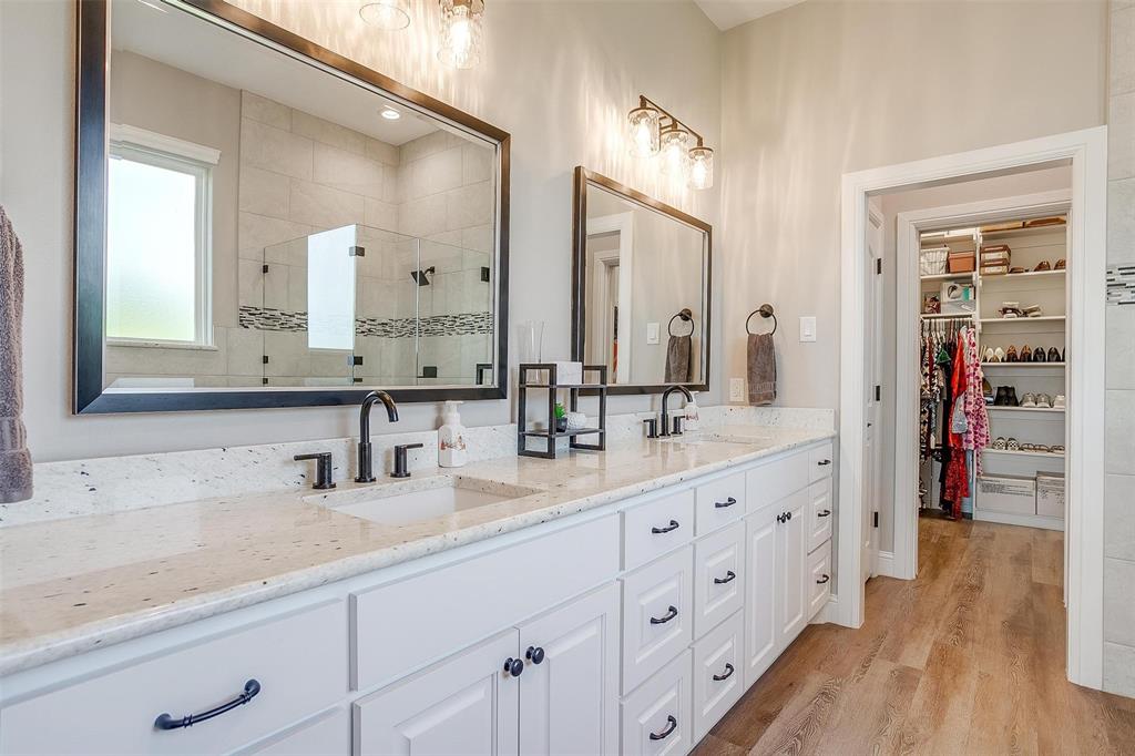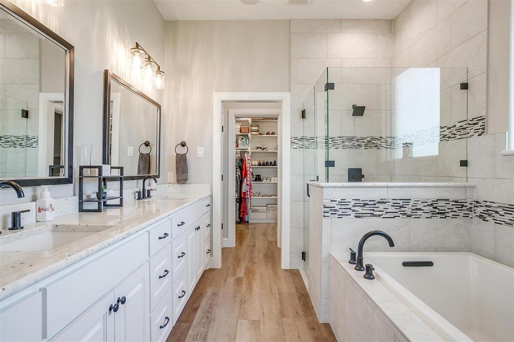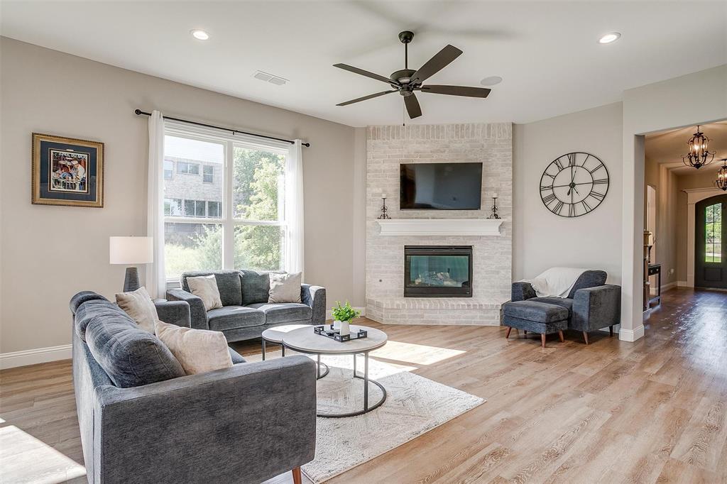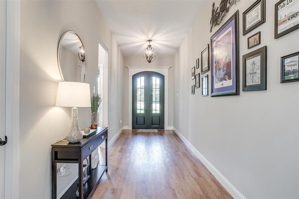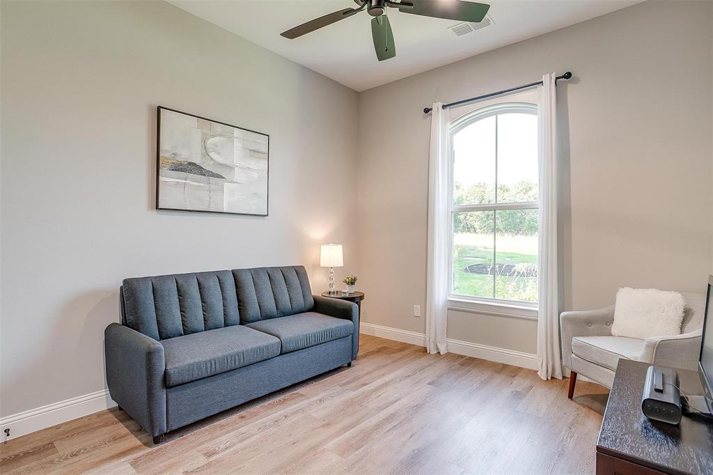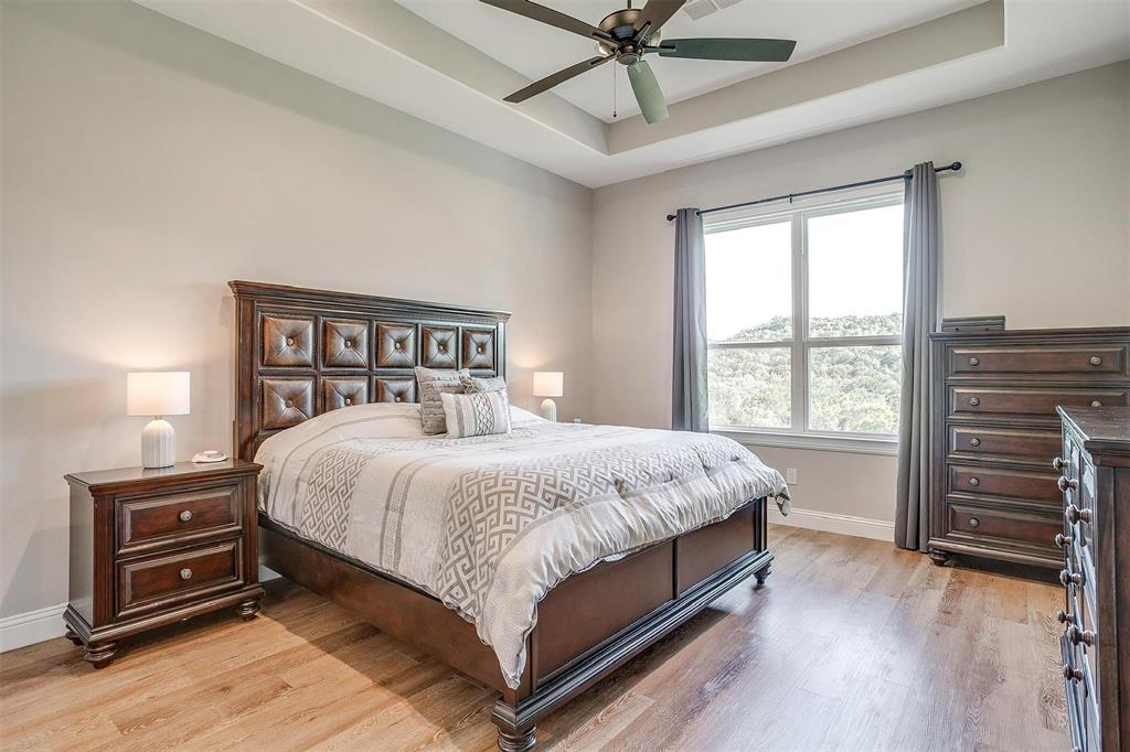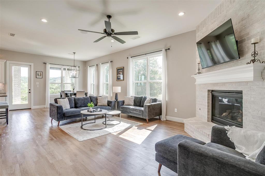 This almost new custom French Contemporary home has views all the way to the Brazos River. It’s open and bright with amazing views from almost every window. Located in a quiet corner of the award winning Retreat Golf Club, where you will have access to one of the nicest private clubs in the DFW area. This home has a beautiful flow that’s perfect for entertaining and has many spots for private relaxation as well…Including a custom “snug room” where you can curl up with a book. The living room is open and the fireplace is a beautiful focal point that can be enjoyed from the kitchen, dining, or the comfortably settled into the couch!