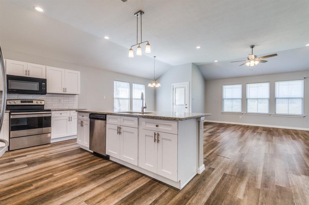 This well-kept 4-bedroom, 2-bathroom home offers 1,698 sq ft of modern comfort in a prime Fort Worth location. Built in 2022, it features an open-concept layout with 10-ft ceilings in the foyer, hallway, living room, and primary bedroom. The kitchen includes a 9-ft island with oversized counter space, luxury vinyl plank flooring in common areas, and porcelain tile in bathrooms. Bedrooms are carpeted for added comfort.