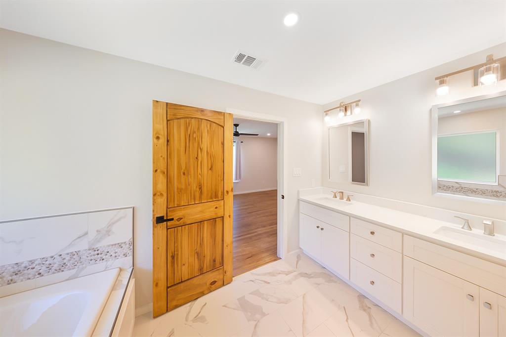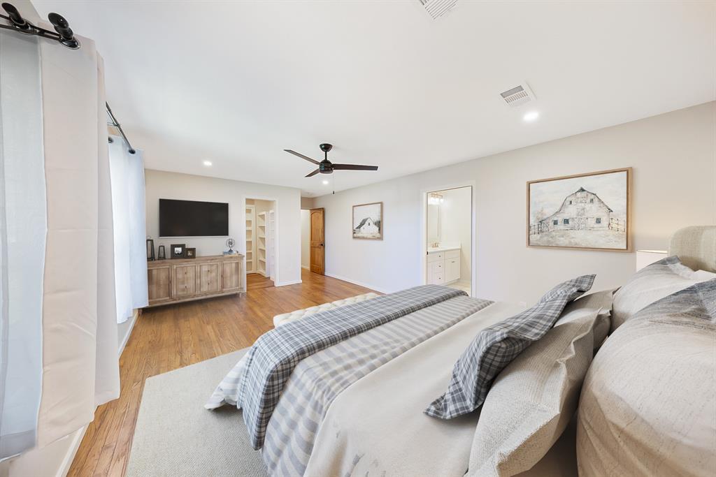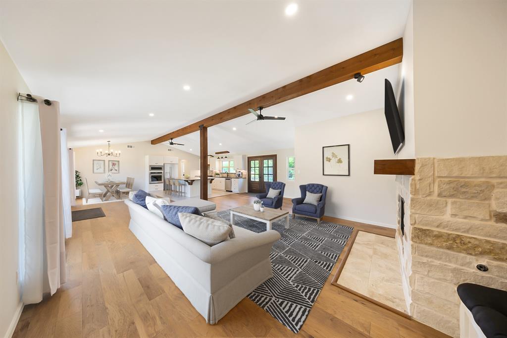 Charming single-story home on 1.1 acres, fully remodeled and move-in ready. Nestled on a spacious lot, this beautifully remodeled single-story home offers the perfect blend of modern comfort and peaceful country living. Completely renovated in 2022, the home features an open-concept layout ideal for entertaining and everyday living. Step inside to find a bright, airy interior with updated finishes throughout, including wood flooring, recessed lighting, and a stylish kitchen with sleek cabinetry, granite countertops, and stainless steel KitchenAid appliances. The open design seamlessly connects the kitchen, dining, and living areas, creating a warm and inviting space for family and friends. Enjoy the privacy and space of a large lot with endless possibilities—whether you envision a garden, pool, workshop, or simply room to roam. With all living spaces on one level, this home offers ease and accessibility for all lifestyles. Large primary bedroom with big walk in closet, secret storage, ensuite bath, complete with over sized walk in shower, soaking tub, and dual vanities. There is a second bedroom with an ensuite bathroom and large walk-in closet. Don't miss your chance to own a turnkey property with room to grow, just minutes from local amenities but with the tranquility of wide-open space. Home is slated to go to brand new Highland Elementary School in the fall, which is the street. Lower tax rate with NO CITY TAXES!