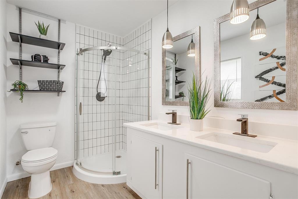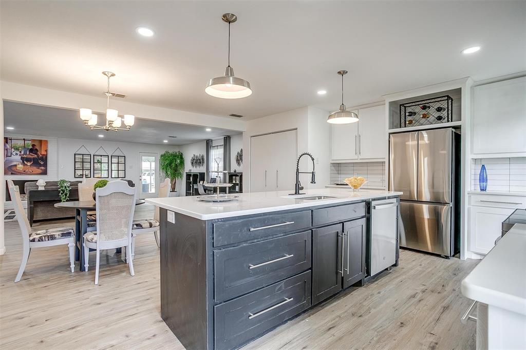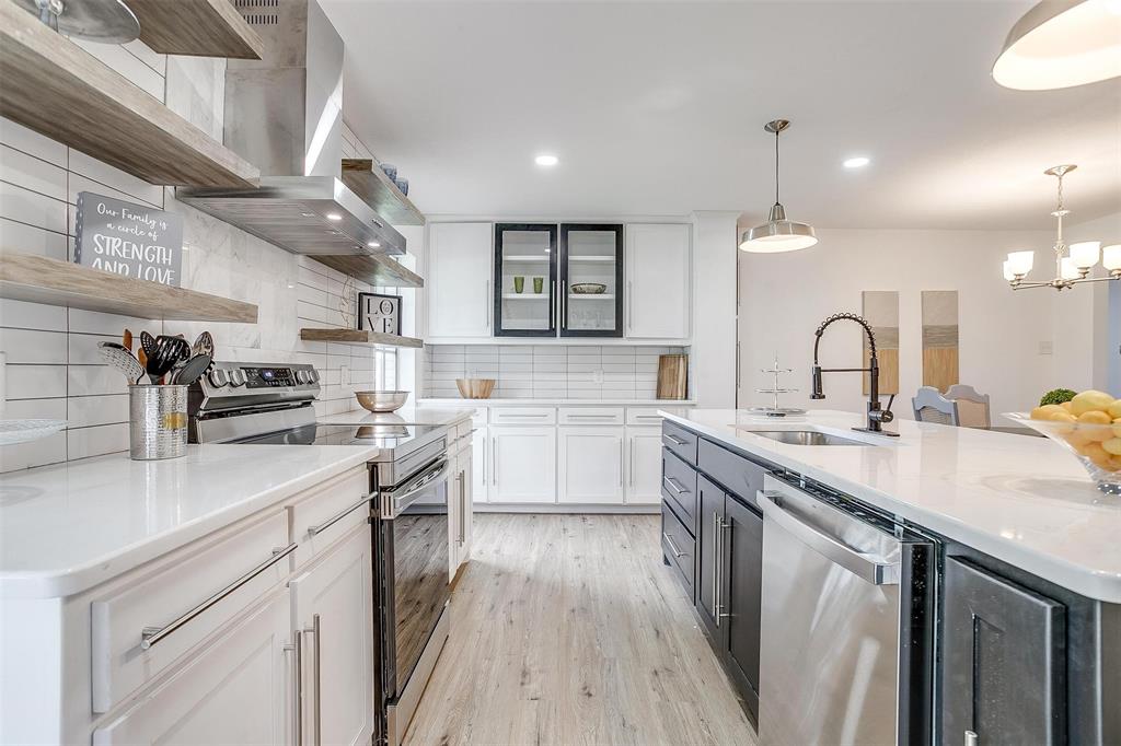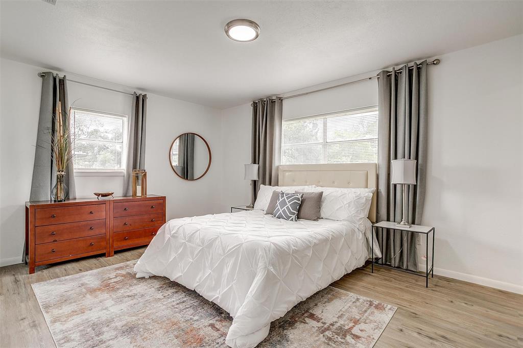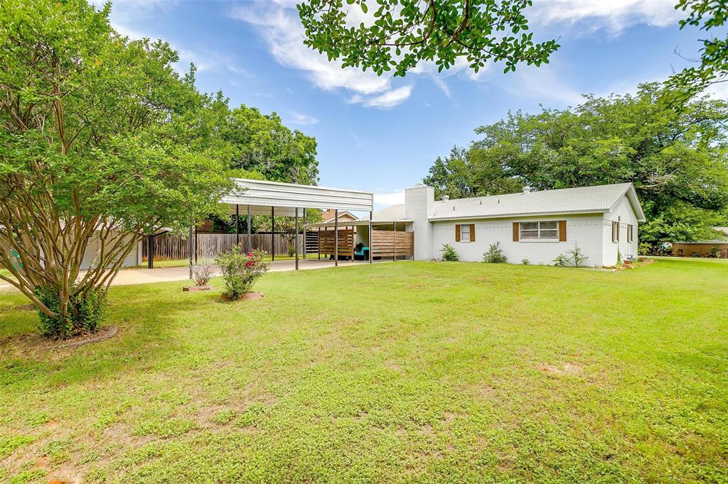 Roof was recently replaced! Welcome to this beautiful, renovated 3-bedroom, 2-bathroom home nestled in the heart of Granbury, Texas within walking distance to the water. With its charming white painted brick exterior accented by elegant wood shutters and surrounded by large, mature trees, this home offers both curb appeal and tranquility. Inside, you'll find a seamless flow of luxury vinyl plank flooring throughout, creating a warm and inviting atmosphere. The spacious kitchen is a chef's dream, featuring a large quartz island with a breakfast bar, perfect for casual dining or entertaining guests. Ample open shelving, a stylish subway tile backsplash, & plenty of storage space make this kitchen both functional & fashionable. The open-concept living room provides a cozy retreat, complete with a wood-burning fireplace. This space effortlessly flows into the kitchen and offers direct access to the backyard, making indoor-outdoor living a breeze. The primary bedroom is a serene sanctuary, complete with an ensuite bath that boasts dual sinks and a luxurious walk-in shower. The two additional bedrooms are generously sized and share an updated full-size bathroom, providing comfort and convenience for family or guests. Step outside to enjoy the covered patio, ideal for relaxing or entertaining. The property includes a carport tall enough for RV parking, as well as a practical workshop with electricity. The expansive backyard offers plenty of space for outdoor activities and gardening enthusiasts. Living in this community means access to a host of amenities, including a serene lake, a refreshing pool, and well-maintained tennis and basketball courts. The house has a tankless hot water heater, newly updated electrical service panel, and a new roof. This home truly offers a perfect blend of modern comforts and recreational opportunities. Make this inviting Granbury home yours and enjoy a lifestyle of comfort, convenience, and community.