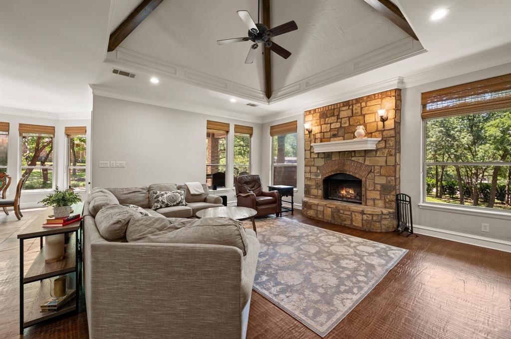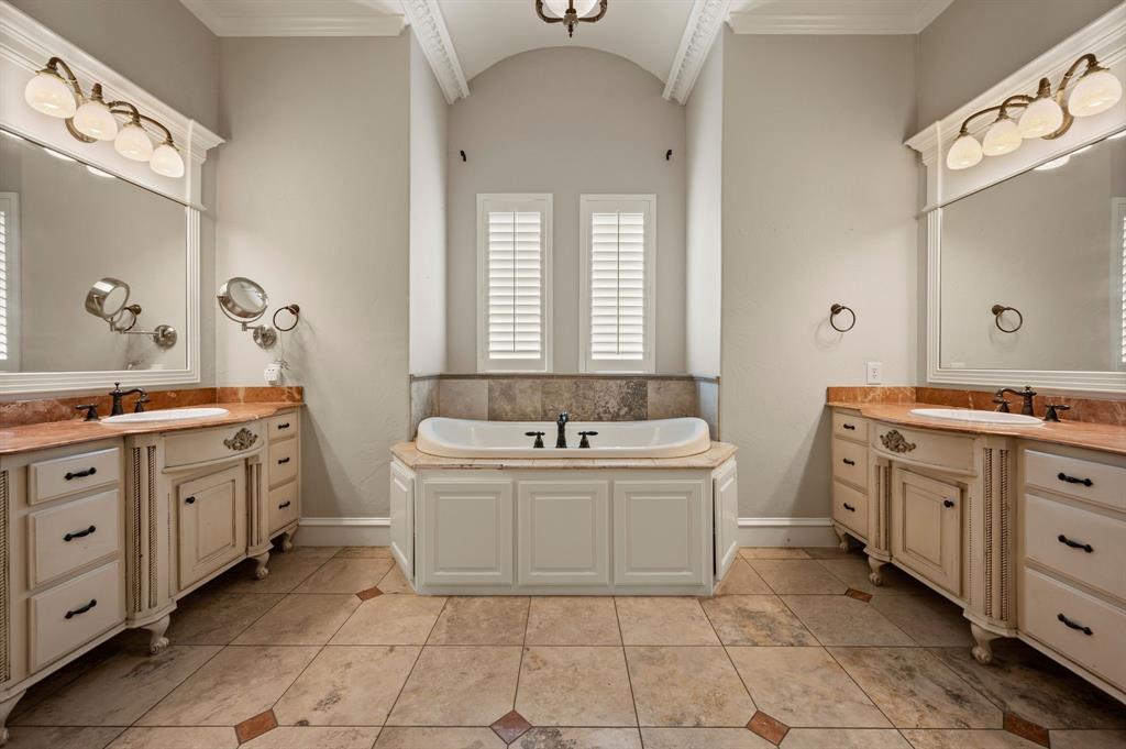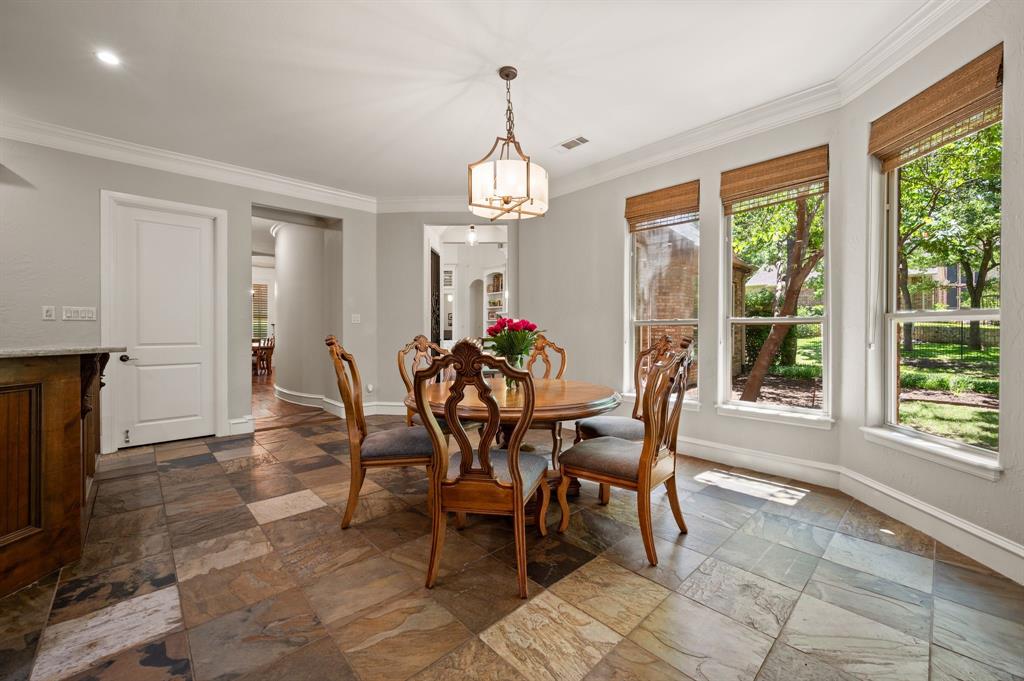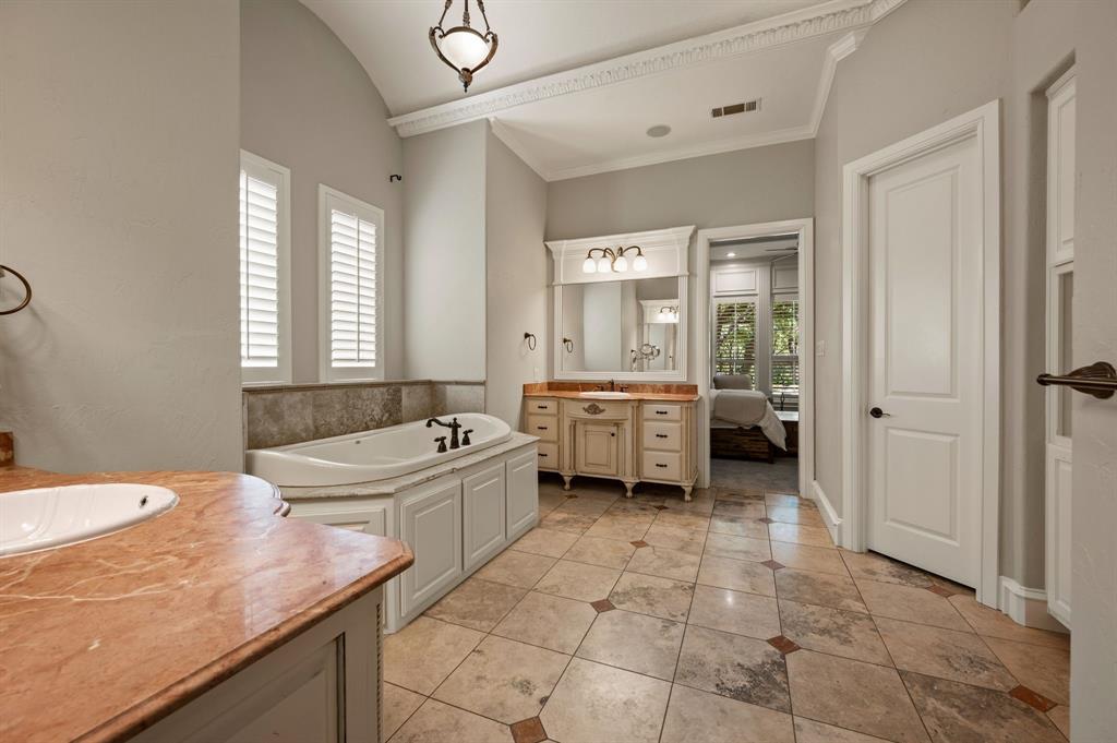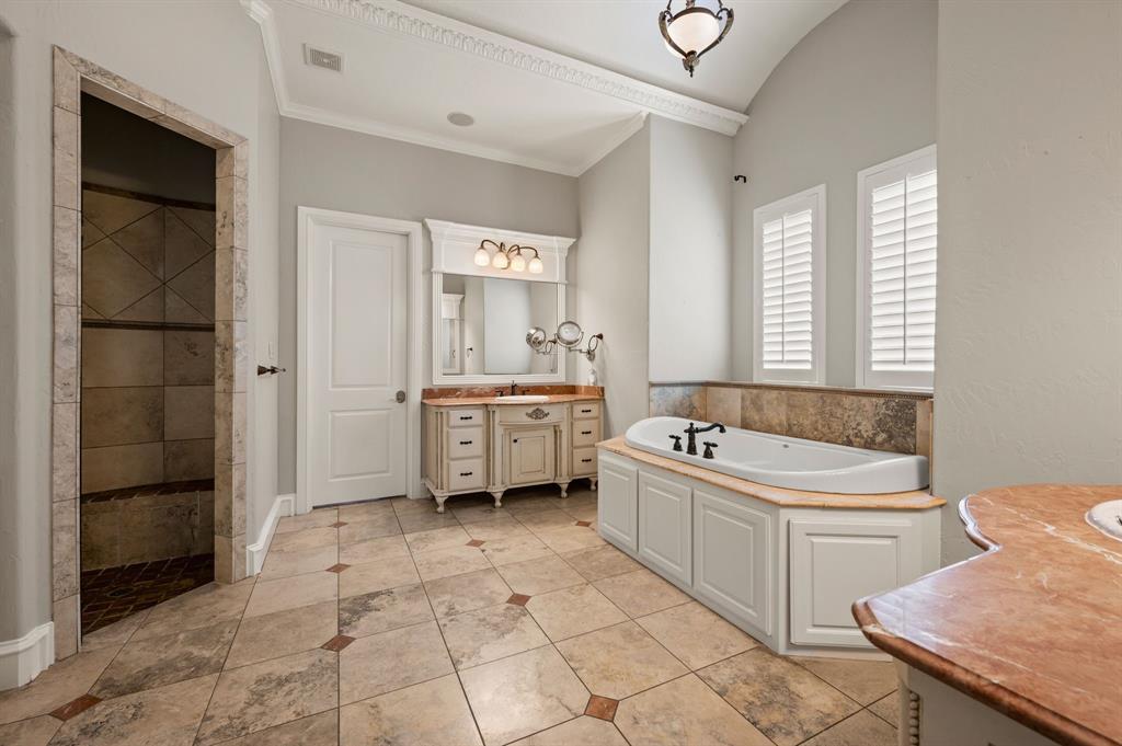 Welcome to your Perfect Summer Staycation. Nestled on just over an acre in the Prestigious Wingate Hill Community, this Stunning English-style Custom Home offers a Refined Blend of Elegance, Comfort and Privacy. Thoughtfully Designed with Both the Primary Suite and a Guest Suite Located on the FIRST Floor, the Layout Provides Ideal Convenience for Multi-Generational Living or Hosting Guests. Each Additional Bedroom Features its own Private En-suite Bathroom, Offering a Personalized Retreat for Every Member of the Household. High-end Designer Finishes Grace Every Corner of the Home, with a Grand Staircase, Soaring Floor-to-Ceiling Windows, Intricate Millwork and Rich Hardwood Floors that Set a Warm, Elegant Tone Throughout. The Gourmet Kitchen is a Chef’s Dream, Equipped with a Gas Cooktop, Pot Filler, Built-in Refrigerator, Oversized Center Island, Walk In Pantry and a Charming Breakfast Room that Perfectly Suits Both Everyday Living and Entertaining. A Dedicated Pool Bath, Along with Two Additional Half Baths—One Upstairs and One Downstairs—Enhance Functionality Throughout the Home. Large Laundry Room includes a Sink and room for an Extra Refrigerator. The Private Study or Craft Room adds Flexibility for Work and Creativity. Upstairs, an Expansive Game Room with a Wet Bar and a Fully equipped Media Room with Surround Sound offer Elevated spaces for relaxation and entertainment. The Serene Primary Suite includes a spa-like bath with a jetted tub, an impressively spacious walk-in closet and its own private coffee bar for peaceful mornings. Step outside to discover your own backyard paradise featuring a heated diving pool and a relaxing spa, all framed by beautifully landscaped grounds and additional Covered Living Space. Don't Miss the Garage also has an Additional Office Space. Recently updated new carpet and fresh paint, this home is move-in ready & perfectly located just 11 minutes from DFW International Airport & 7 minutes from Southlake Town Square.