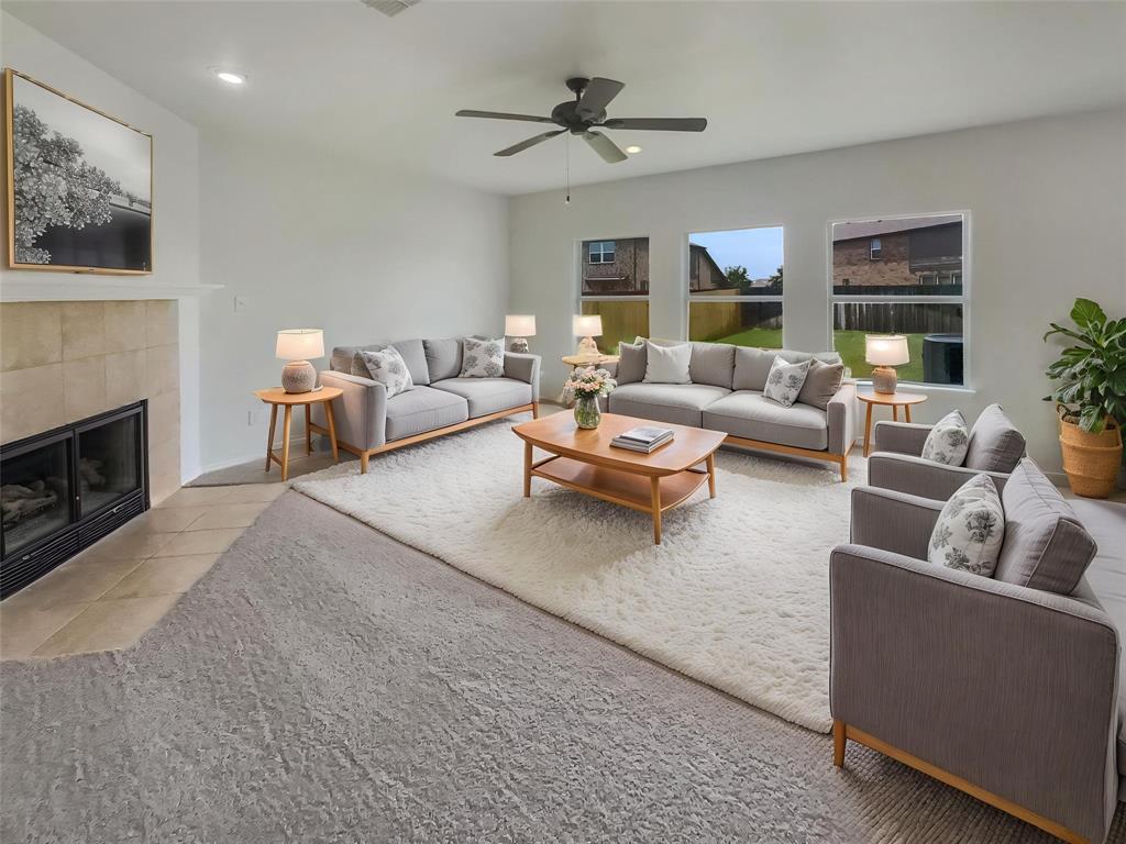 Check out this stunner! This home has Fresh Interior Paint, Fresh Exterior Paint, Partial flooring replacement in some areas. A fireplace and a soft neutral color palette create a solid blank canvas for the living area. You'll love cooking in this kitchen, complete with a spacious center island and a sleek backsplash. The primary bathroom is fully equipped with a separate tub and shower, double sinks, and plenty of under sink storage. Take it easy in the fenced in back yard. The covered sitting area makes it great for BBQs! A must see! This home has been virtually staged to illustrate its potential.