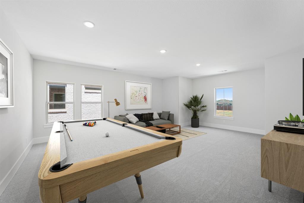 Located in Arlington ISD part of the Sterling Greene community, the neighborhood offers excellent opportunities in education and an added sense of comfort with a gated entrance. This stunning 2-story home provides a comfortable open floorplan with an Extra Suite, ideal for extended stay guests. A private home office followed by an intimate dining room is great for entertaining. The kitchen features a spacious island and overlooks the well-lit great room. A cozy dining area allows access to the covered patio, great for outdoor living. In from the garage, a HovHall and laundry room keep your home tidy. The primary suite with private bath and spacious walk-in closet. A versatile loft and 2 additional bedrooms with hall bath allow for comfort for all.