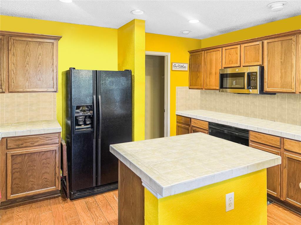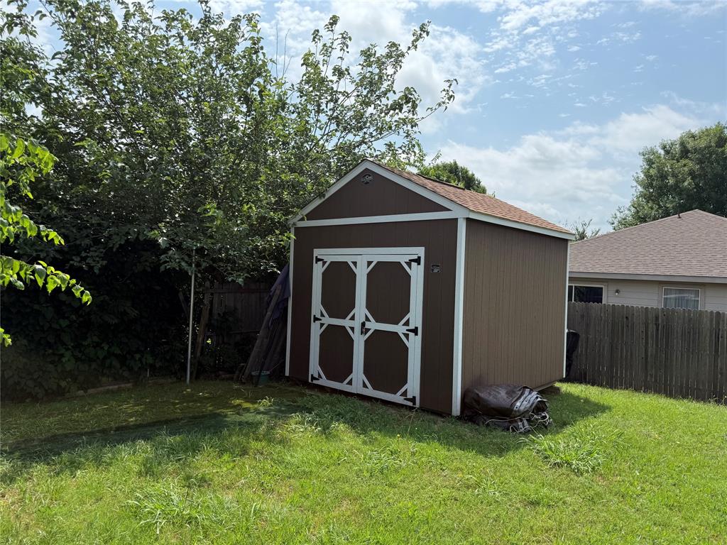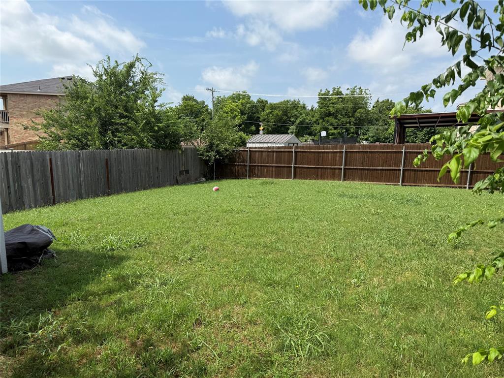 The master suite is a true retreat with a walk-in closet and a private bath with a walk-in shower. The home also includes a large, fenced backyard with mature trees, perfect for outdoor fun.
