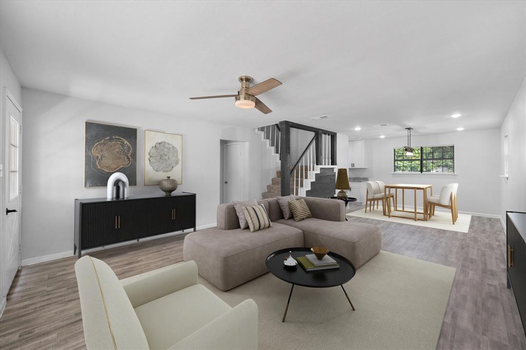 Welcome to 1312 E Collin Street — a beautifully updated two-story home that blends modern touches with timeless charm. This freshly painted exterior features a crisp white facade accented by sleek black trim, offering standout curb appeal. Situated on a spacious lot with mature trees, the home provides both shade and privacy, perfect for enjoying the outdoors. Step inside to discover a bright and inviting layout ideal for family living or entertaining guests. Large windows throughout the home fill each room with natural light. The front porch offers a perfect spot for morning coffee or evening relaxation.