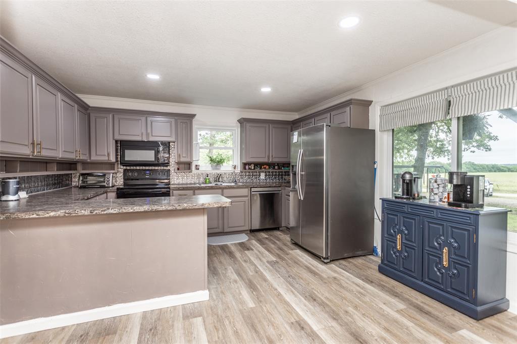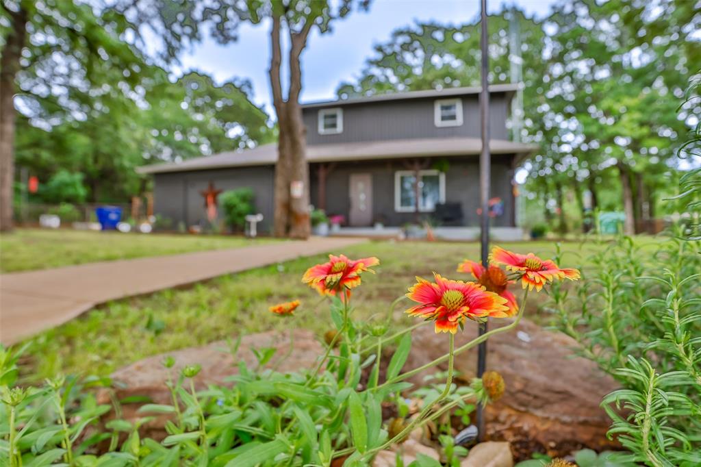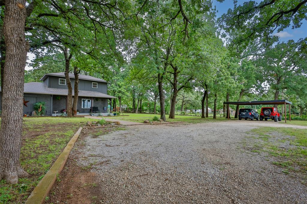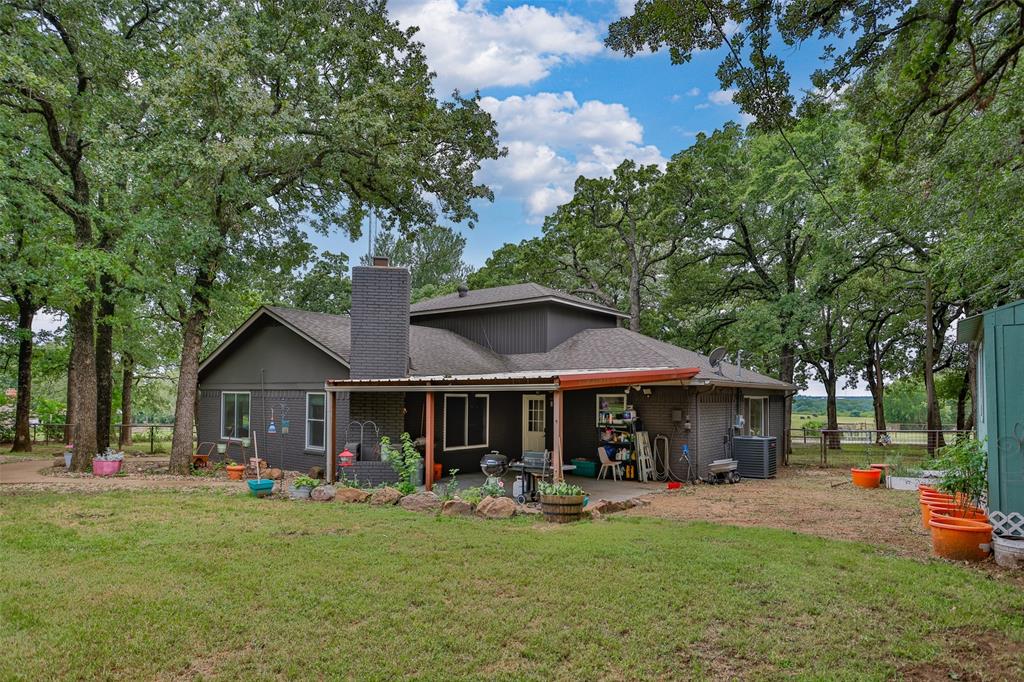 Well-suited for homesteading, this property includes a chicken coop, workshop with electricity and automatic roll-up door, an air-conditioned shed, and a large covered implement shed ideal for tractors, RV, or boat storage. The back pasture provides space for livestock, wildlife watching, or the addition of a barn. A water well is located on the property (not currently in use), adding to the self-sufficiency potential. Additional features include a large circular driveway, 3-car carport, spacious covered front porch, and a huge covered back porch lounge area. Inside, the primary bedroom is located downstairs with two guest rooms upstairs. Ample storage, built-in cabinetry, an office nook, and a large utility room provide everyday functionality. Updates include new windows (2021) and a new HVAC system with upgraded air filtration (June 2024). A privately owned internet tower currently provides Nextlink internet service. Utilities include Pentex Electric, septic system, and Woodbine Water. Conveniently located within an hour of multiple lakes and casinos, this property offers the best of both worlds: peaceful country living with modern amenities and room to create your own homestead