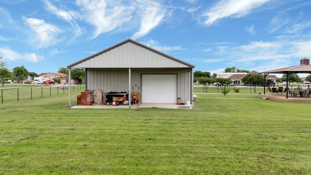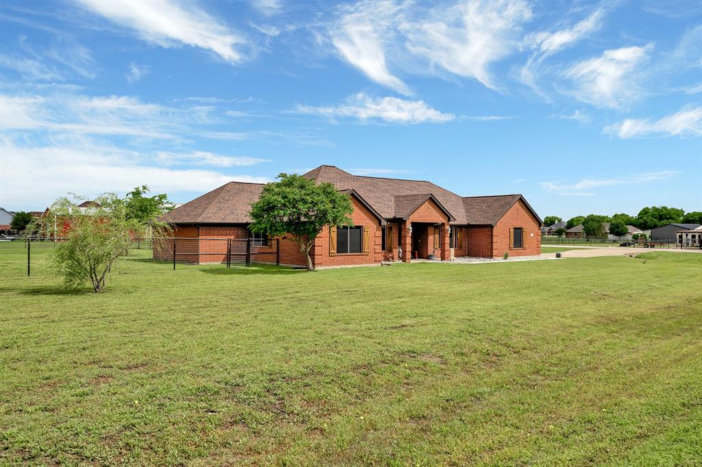 Welcome to your perfect blend of space, comfort, and style. This stunning home sits on over an acre lot and showcases beautifully remodeled spaces including the kitchen, guest bathroom, and primary bathroom. Step inside to find rich wood flooring throughout the home and a spacious open layout that flows seamlessly from room to room. The kitchen is a dream with stainless steel appliances, granite countertops, a tasteful tile backsplash, and dishwasher hookups ready for your convenience. The primary suite is a true retreat with a private sitting area, a luxurious jetted tub, separate shower, and one of the largest walk-in closets you will find. French doors off the living room open to a massive 25 by 25 outdoor patio, perfect for entertaining under the Texas sky. Just steps away, the 40 by 30 workshop offers endless possibilities for hobbies, storage, or business use with electricity and water. Located just minutes from shopping and Highway 287 Business, this home combines rural privacy with quick access to city amenities. Schedule your private showing today and come see why this one checks every box.