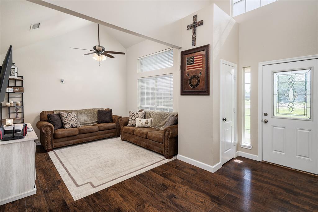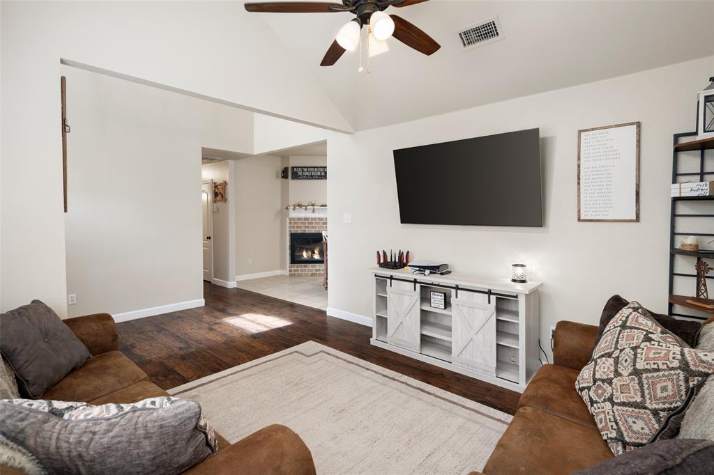 Price Improvement! Enjoy country living in this traditional single story brick home that sits on 0.65 Acre in a cul de sac and NO HOA! Surrounded by similar properties, the outstanding combination is hard to find in this highly sought after estate addition. Mature trees add to curb appeal, the property is fenced with a big covered patio to capture those relaxing views! The 3 BED 2 BA home offers good flow from living, dining and kitchen area. Awesome wood burning fireplace, the mantle adds tons of charm! Kitchen is centered with a window with a great view, cabinets extend to the ceiling, granite countertops complete the design. Primary BR is light and bright, with cathedral ceiling and ensuite. Two additional BR and another full bath, great floorplan! Extended covered deck is ready for a party or a quiet retreat, the property sits near the end of the cul de sac. The two car garage and extended driveway add generous parking space. Property is just off SH 121, only minutes to town, schools, restaurants and main thoroughfares. Within competitive Trenton ISD, this property has it all, small town living, and easy access to all things for daily convenience! Approx. 1 hour north of Dallas & DFW Airport and within approx. 25 miles to McKinney, Sherman, Bonham & Greenville.