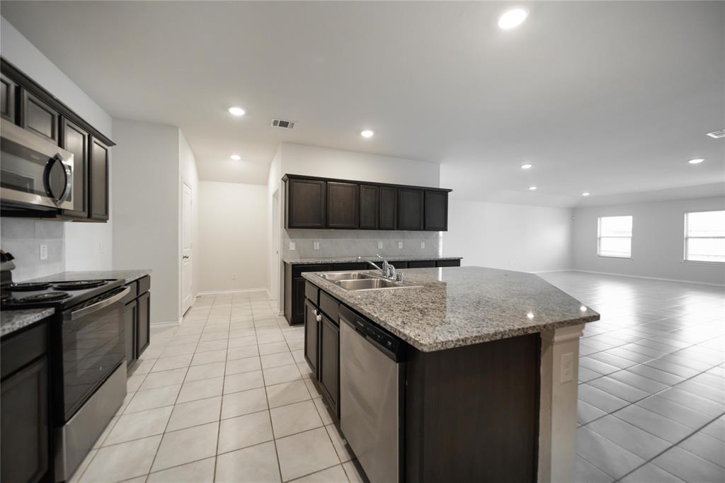 New paint and new roof currently completed. Move in ready. HUGE Open floor plan!! This is a must see for anyone who loves to entertain and gather family. This spacious 4 bedroom home features 2 full bathrooms, big kitchen with open concept leading to the dining and living area. Very spacious master bedroom with an on suite bathroom. Walking distance to the elementary school and all the community amenities such as splash pad, pool, playground and walking trails.